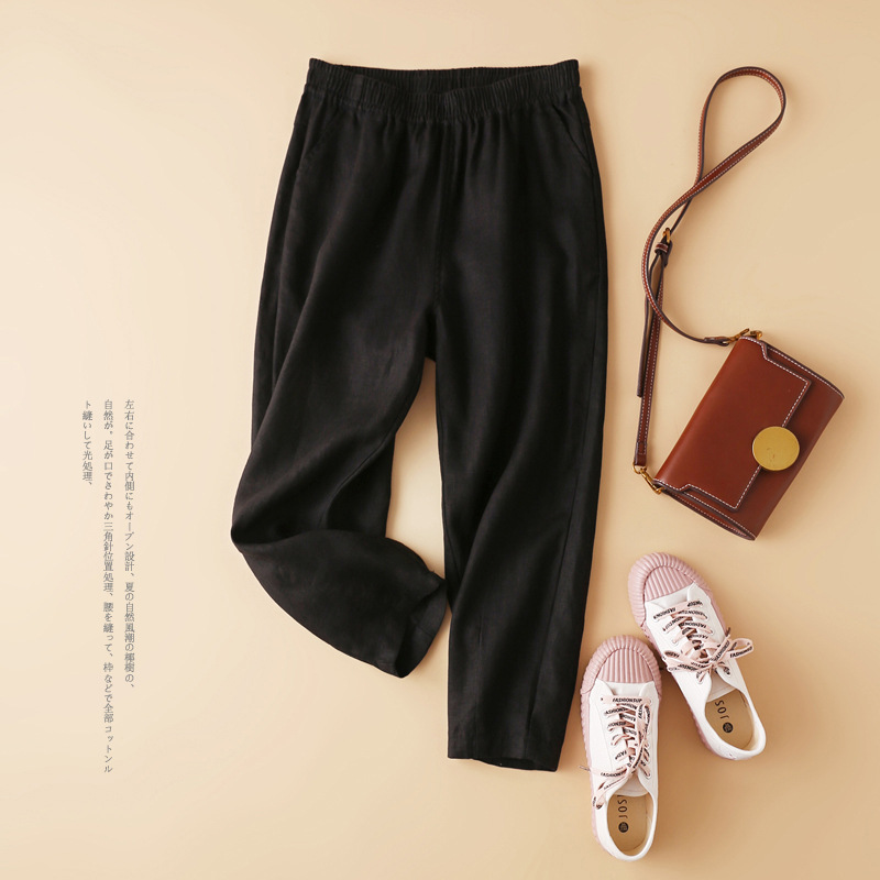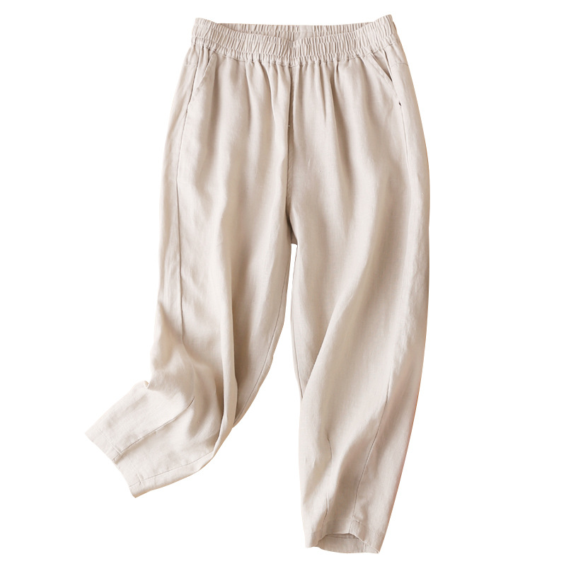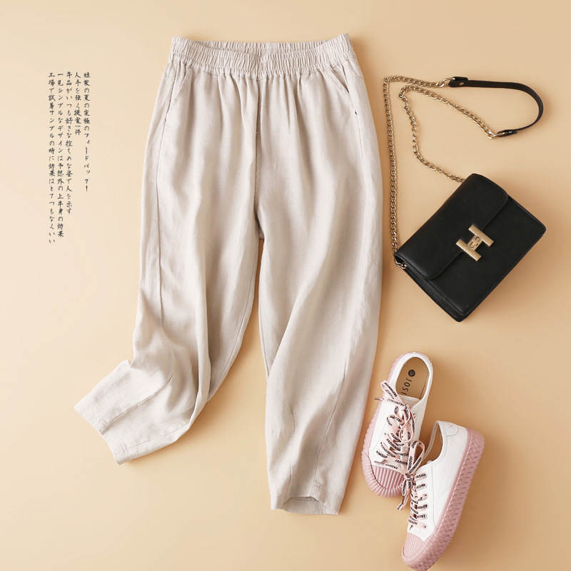 Summer K57 Artistic High Waist Linen Casual Pants Cotton Hemp Harlan Pants Cropped Pants Children Drop Changshu Wholesale