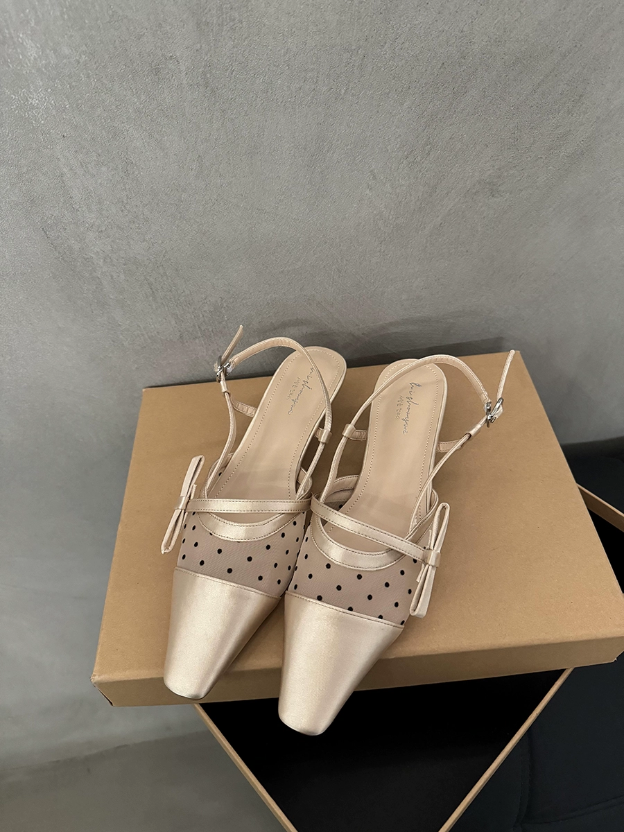 | nameOriginal | Summer kitten heel polka dot mesh bow toe toe sandals |