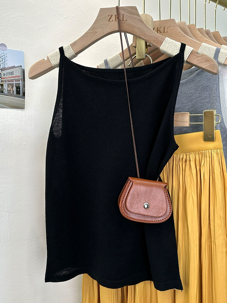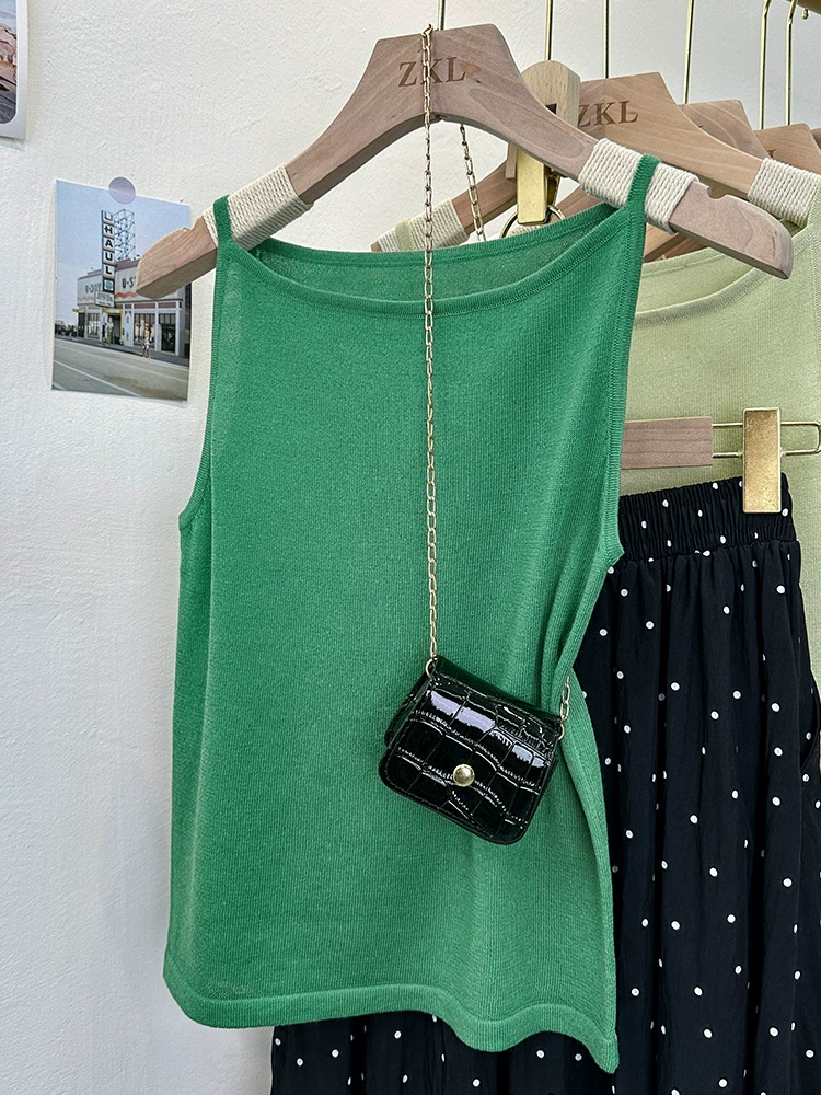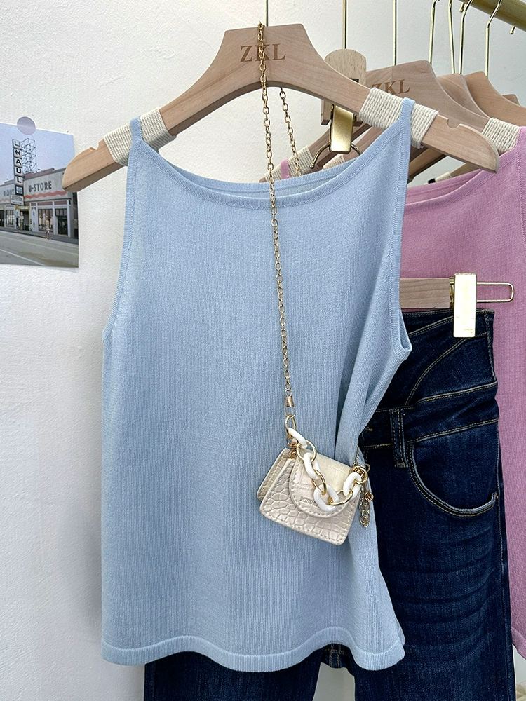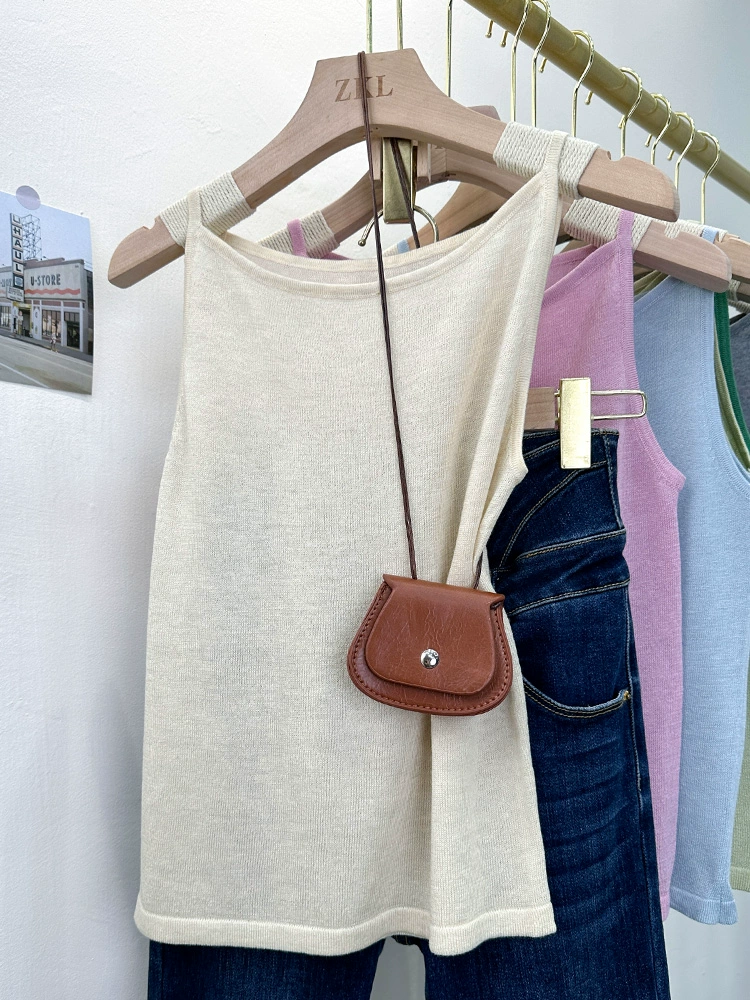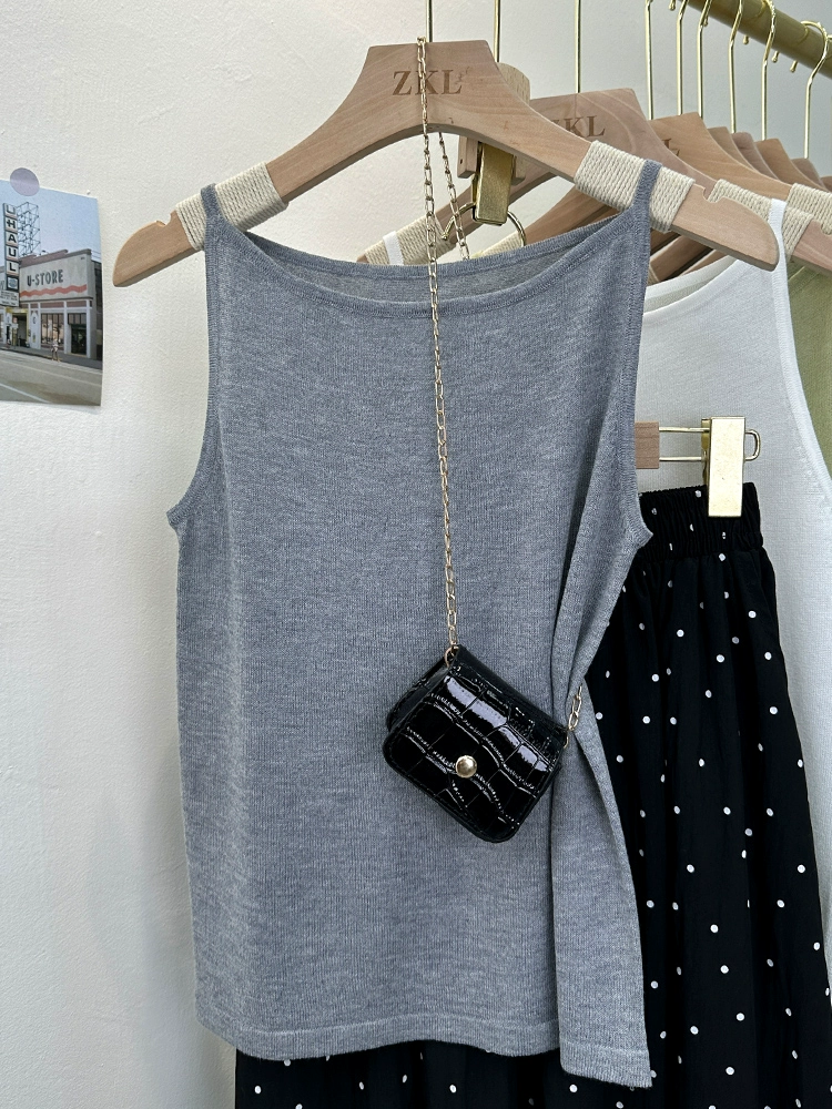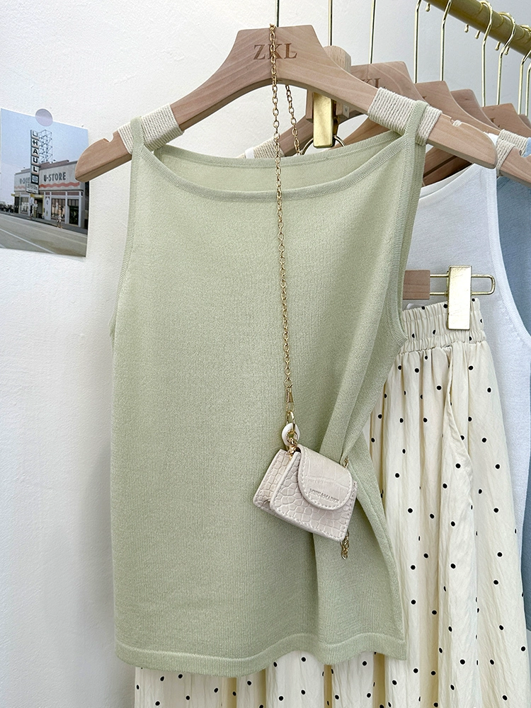 | nameOriginal | Summer knitted solid color versatile short sleeveless suspender belt |