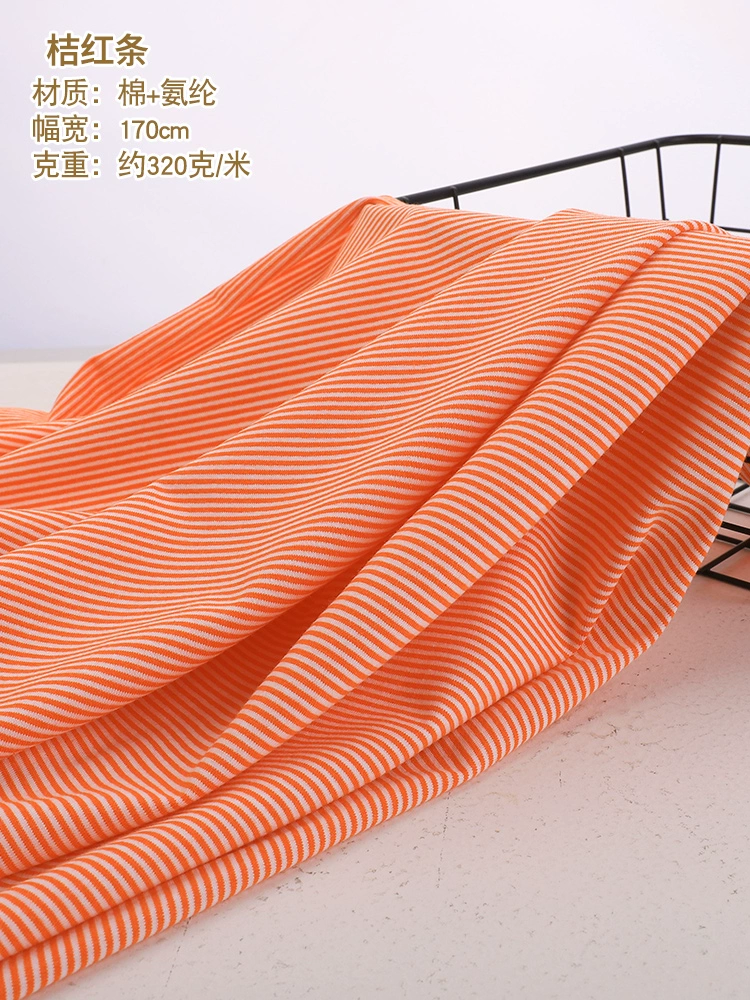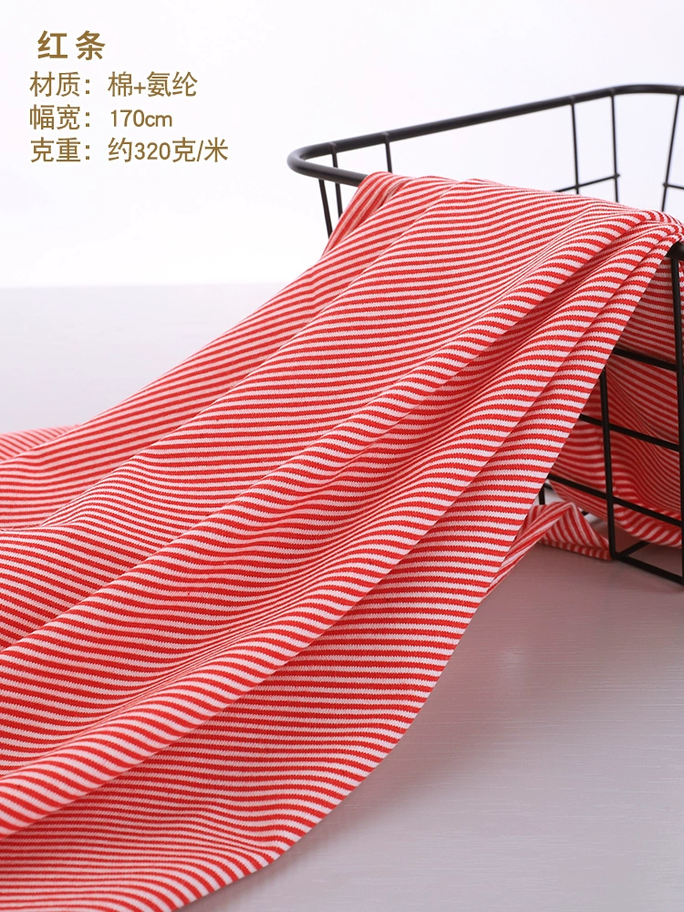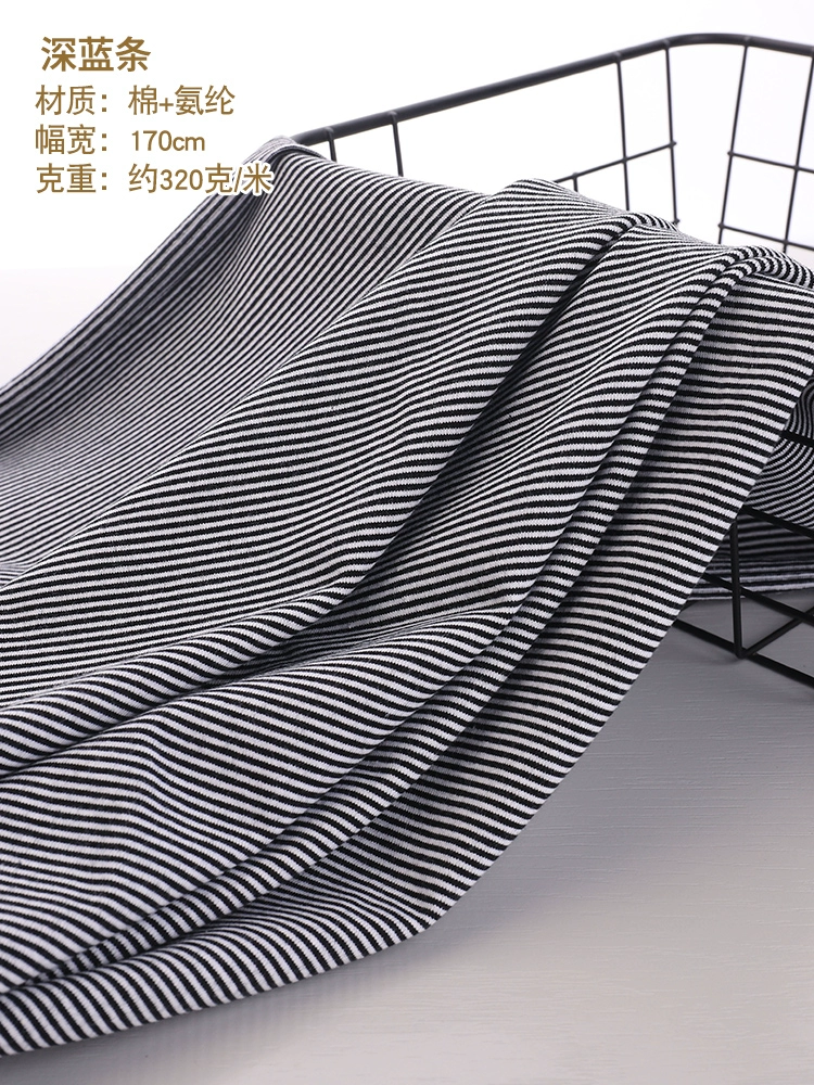 | nameOriginal | Summer knitted stretch Lycra 1mm wide small striped t-shirt cloth pure cotton baby doll t-shirt short-sleeved fabric |