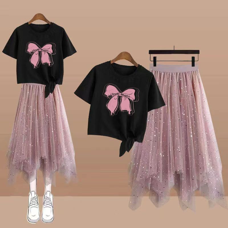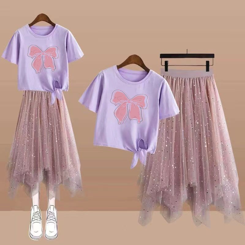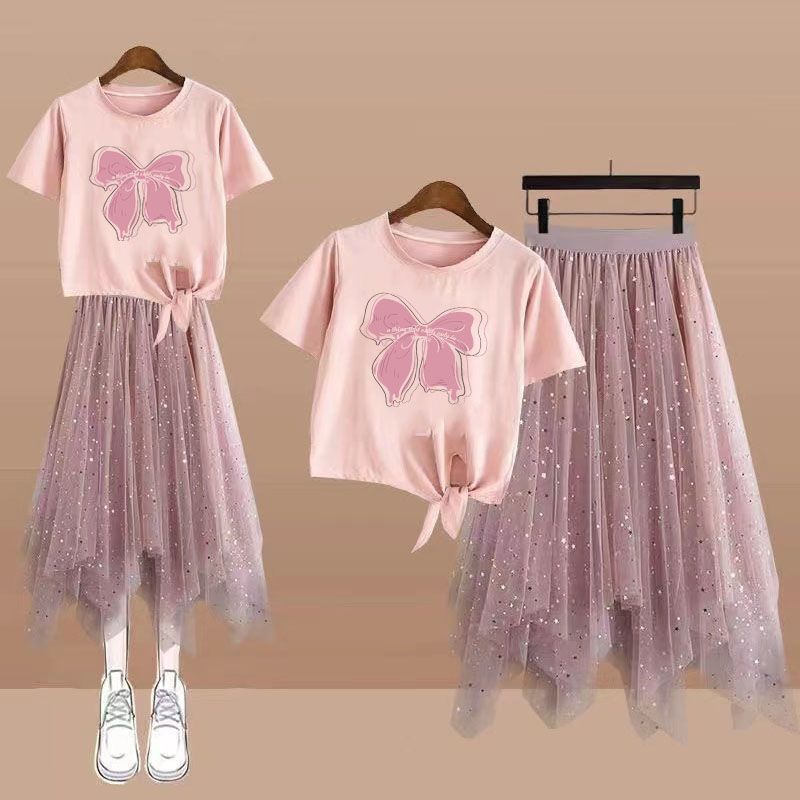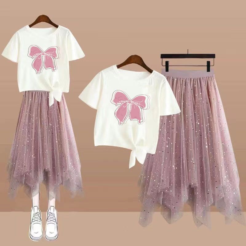 | nameOriginal | Summer Korean 12-year-old fifth grade primary school junior high school students 15-year-old girl irregular mid-length skirt two-piece set |