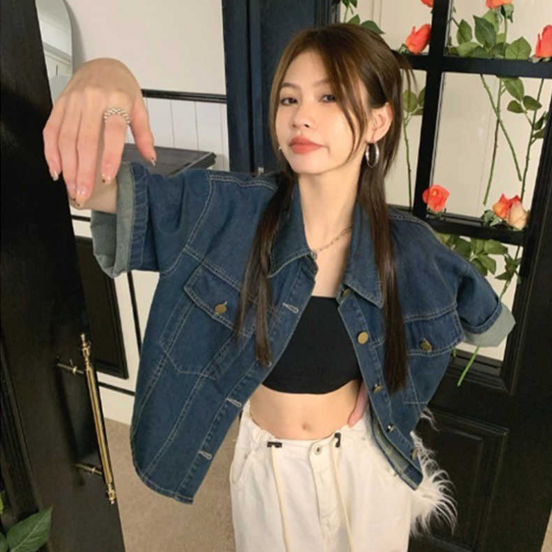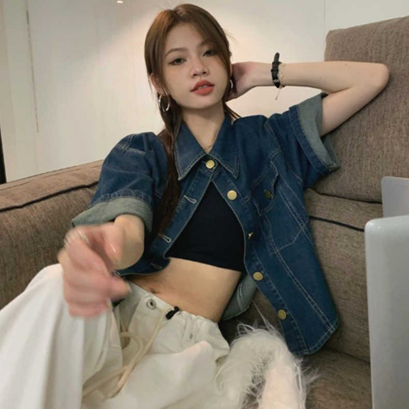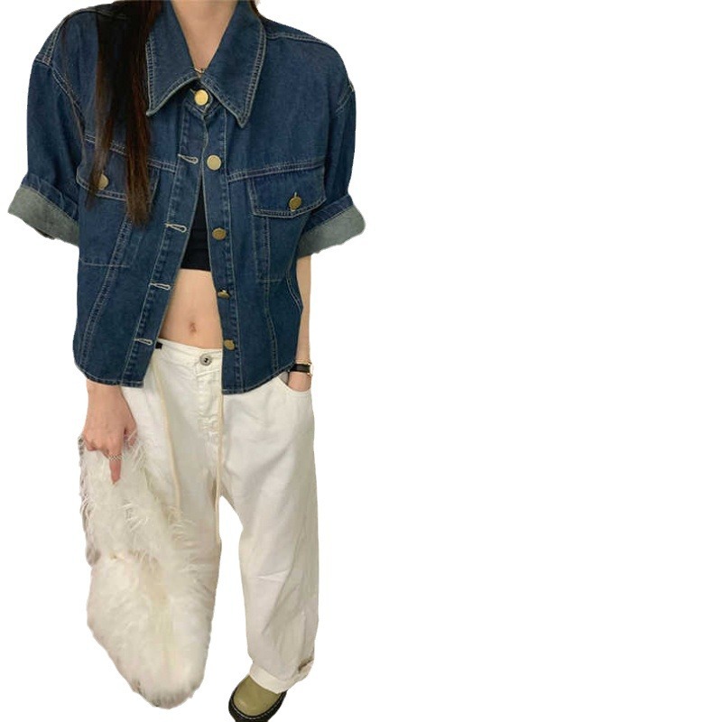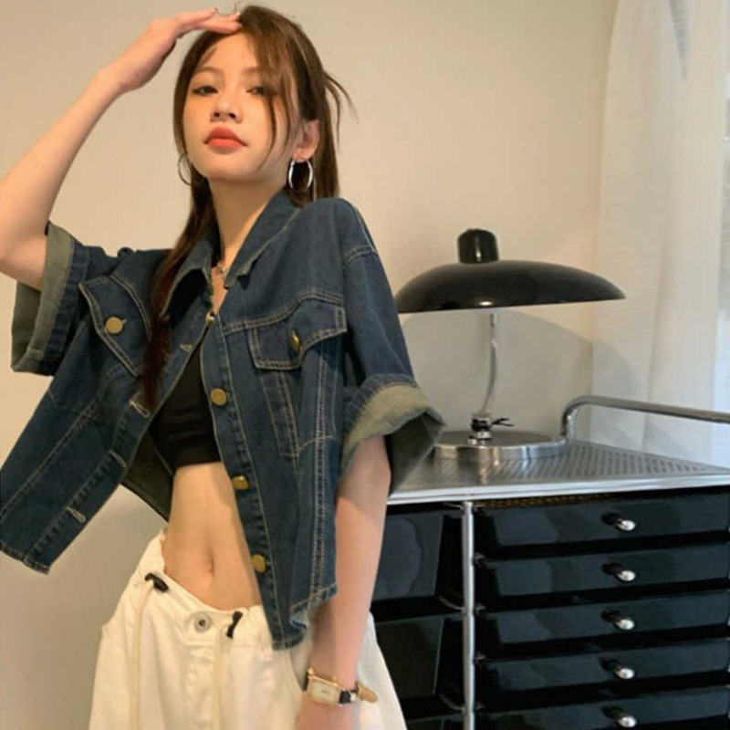 | nameOriginal | Summer Korean chic Hong Kong style retro short short lapel loose short sleeve Denim coat shirt for women |