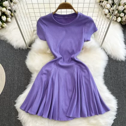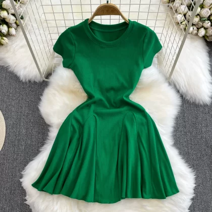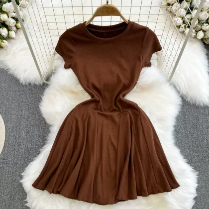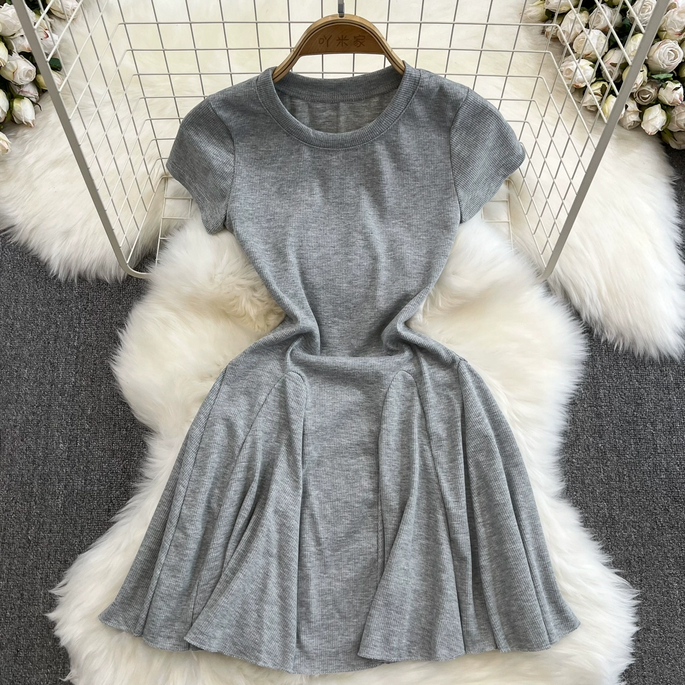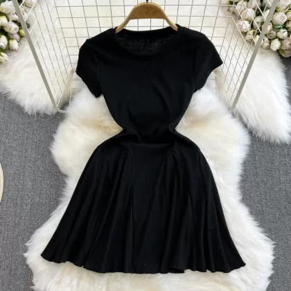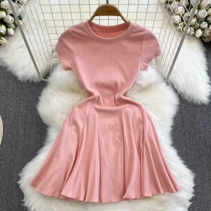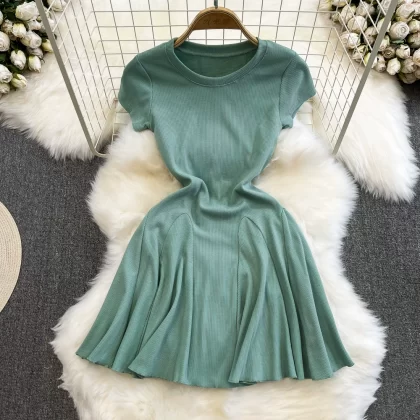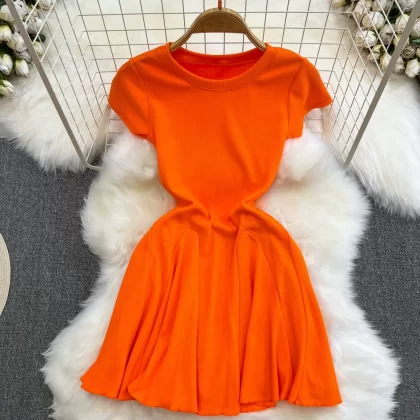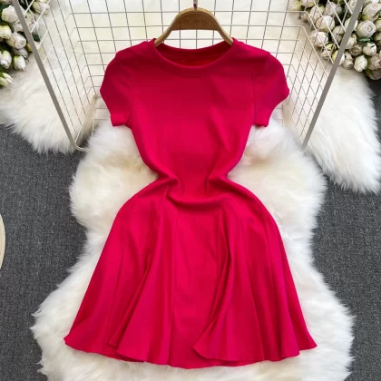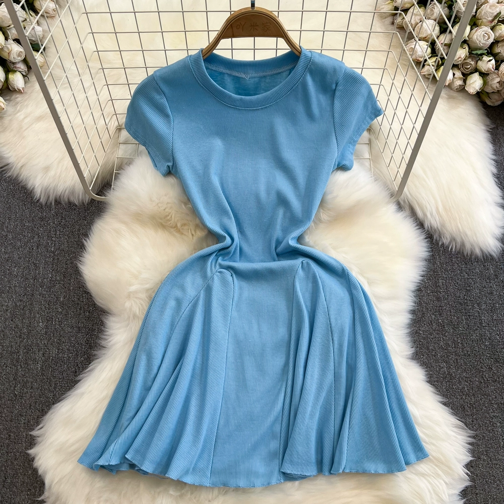 | nameOriginal | Summer Korean fashion solid color a-line dress short sleeves |