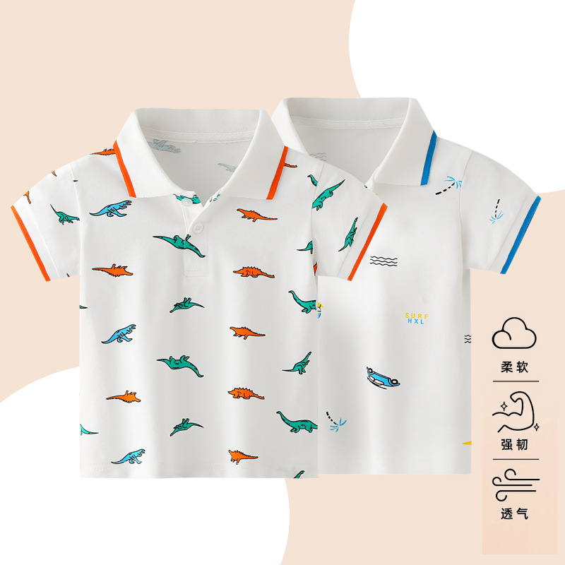 | nameOriginal | Summer Korean style Boys' short-sleeved polo shirt dinosaur cartoon printed casual fashion boys' shirt short-sleeved T-shirt |