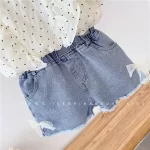 | nameOriginal | Summer Korean style polka dot baby girl chiffon denim short sleeves |