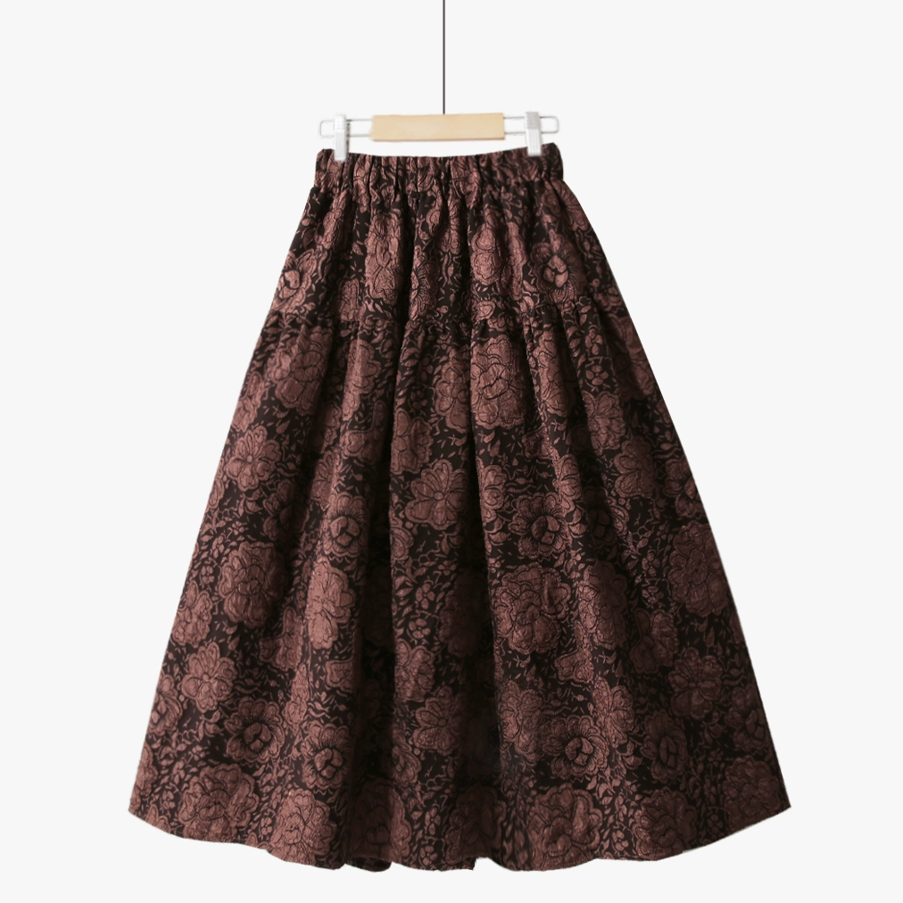Summer Korean style retro solid color three-dimensional flower embroidered skirt elastic high waist slim puff skirt mid-length skirt
