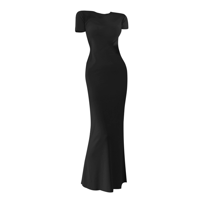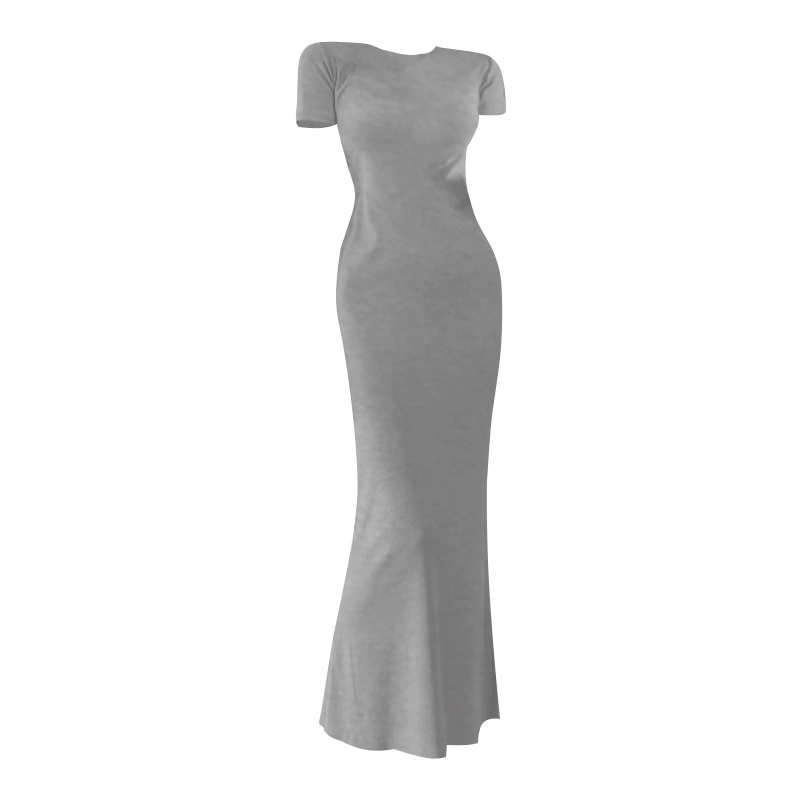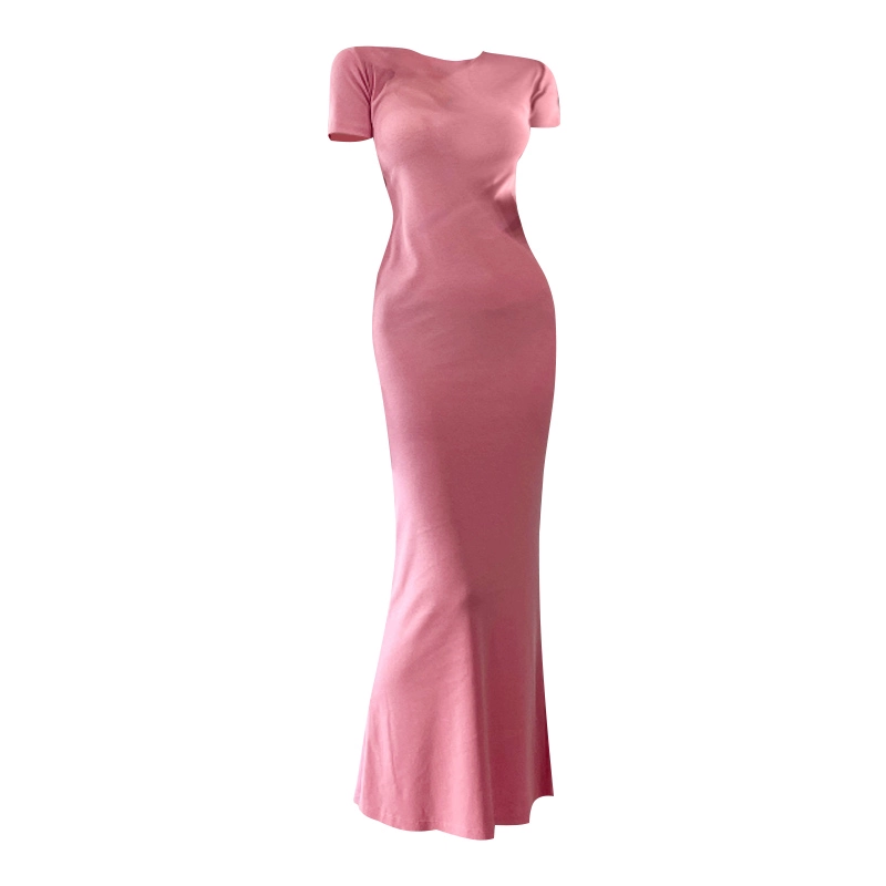 Summer Korean style round neck modal fashionable over-the-knee slit dress with short sleeves, slim fit and hip-hugging long skirt