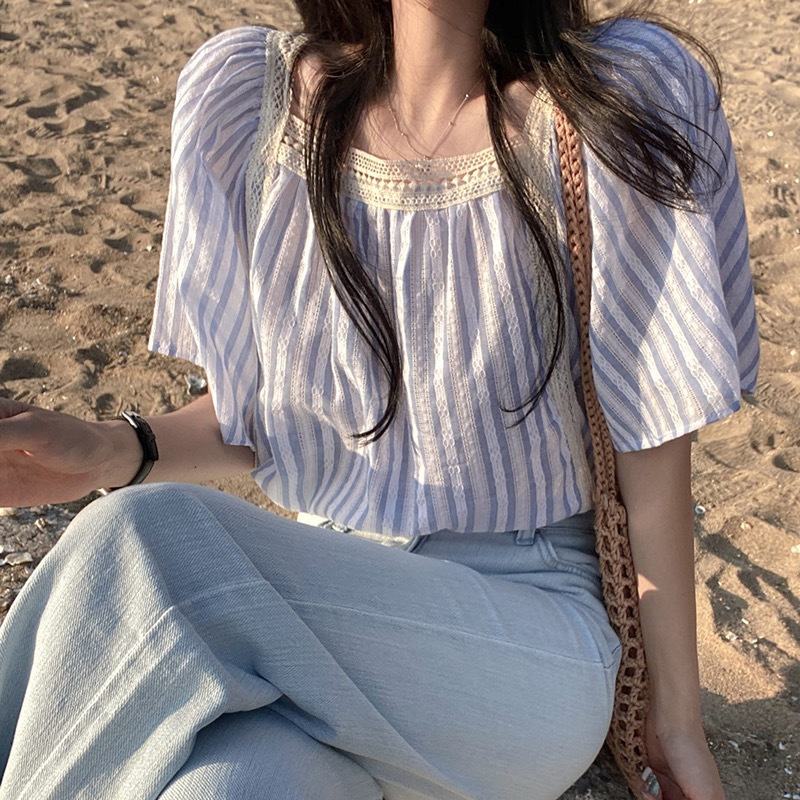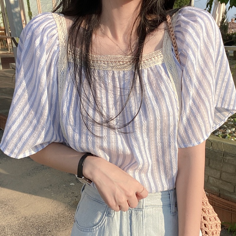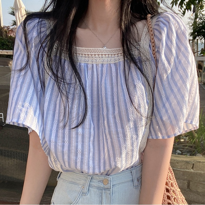 | nameOriginal | Summer Korean Style Sweet Square Collar Lace Small Fresh Loose Puff Sleeve Slimming Short Sleeve Elegant Shirt for Women |