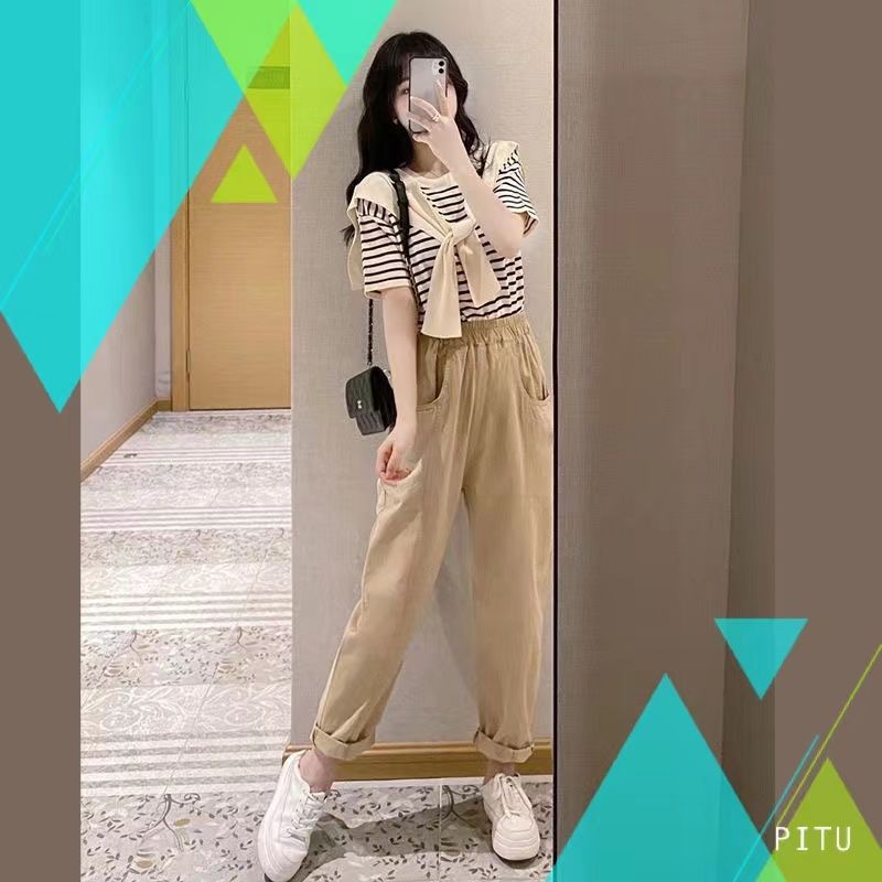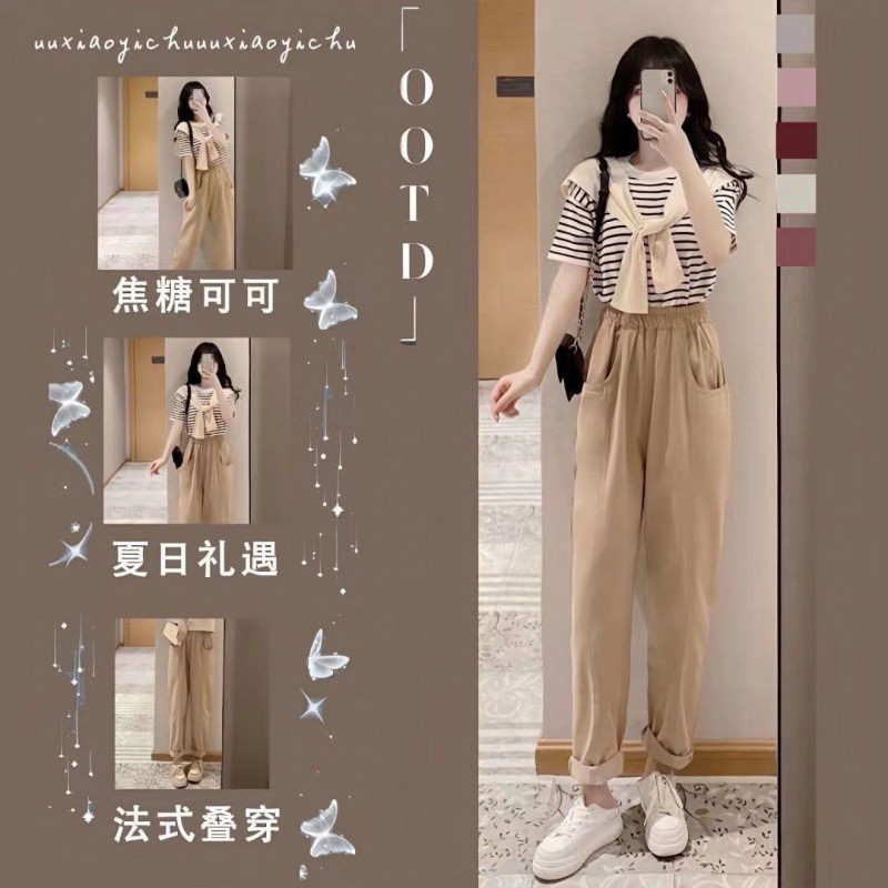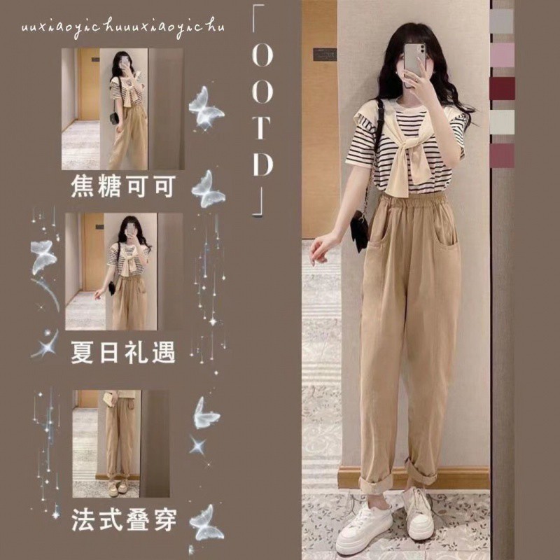 | nameOriginal | Summer Korean-style tea style wear a set of salt can be sweet small loose striped top wide leg pants two-piece set |