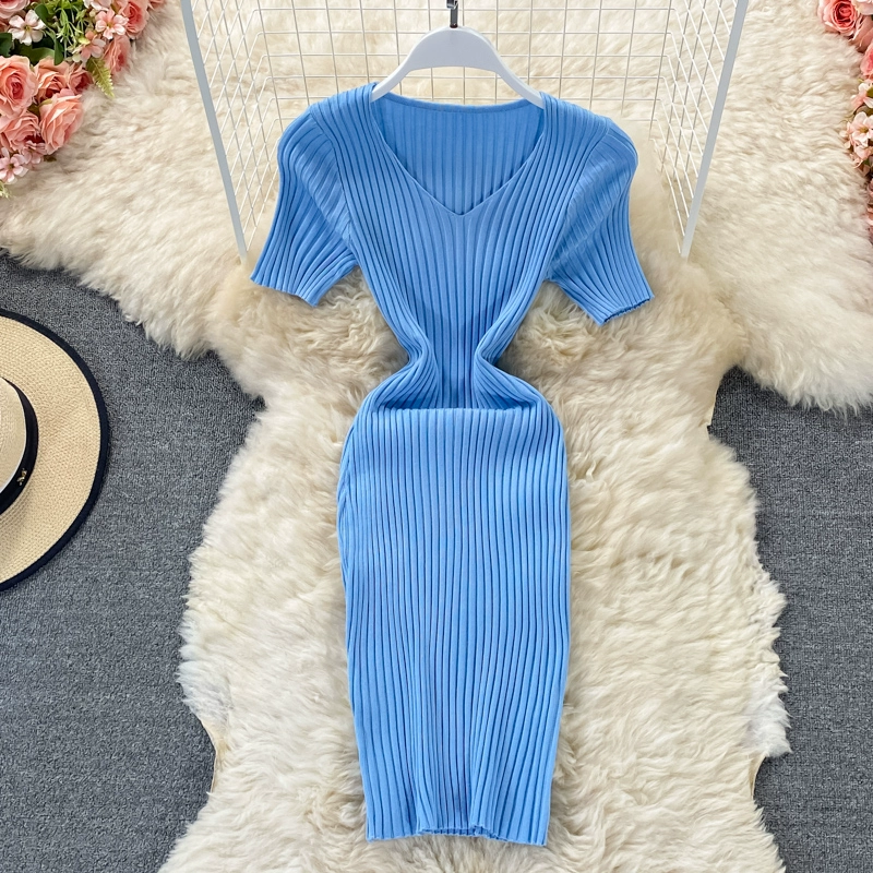 | nameOriginal | Summer Korean style V-neck slim dress with hip-covering short sleeves |