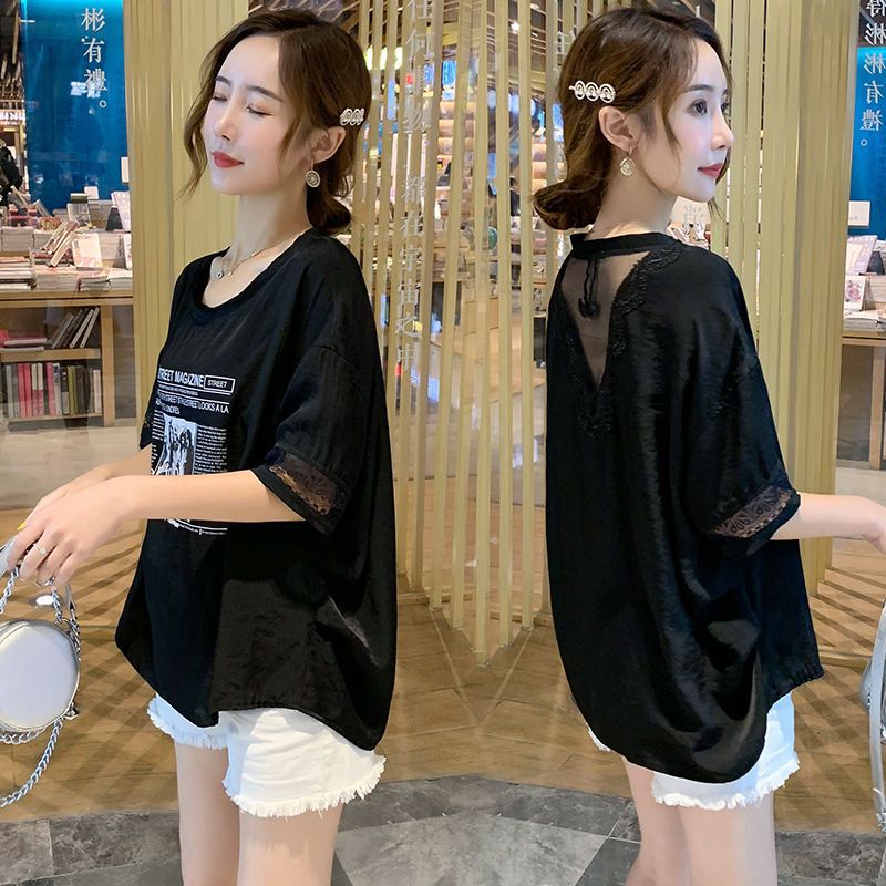 | nameOriginal | Summer Korean version of plus size 200kg loose short-sleeved shirt women's fat watch lace stitching mesh backless top |