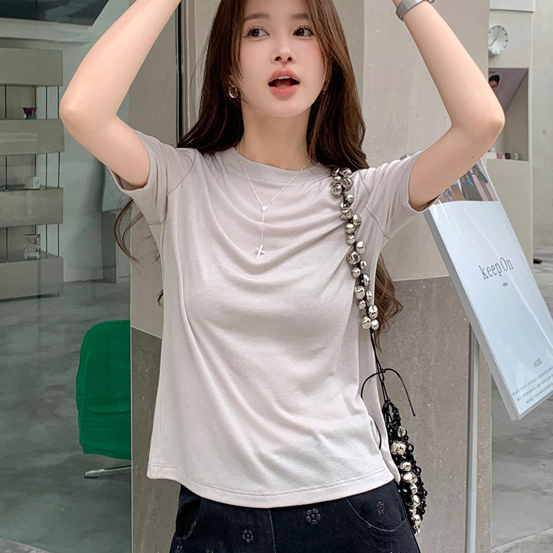 | nameOriginal | Summer Lanjing Tencel New T-shirt Women's Solid Color Interior Slim-fit Slimming Short-sleeved All-match Design Sense Base Top |