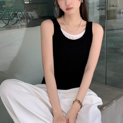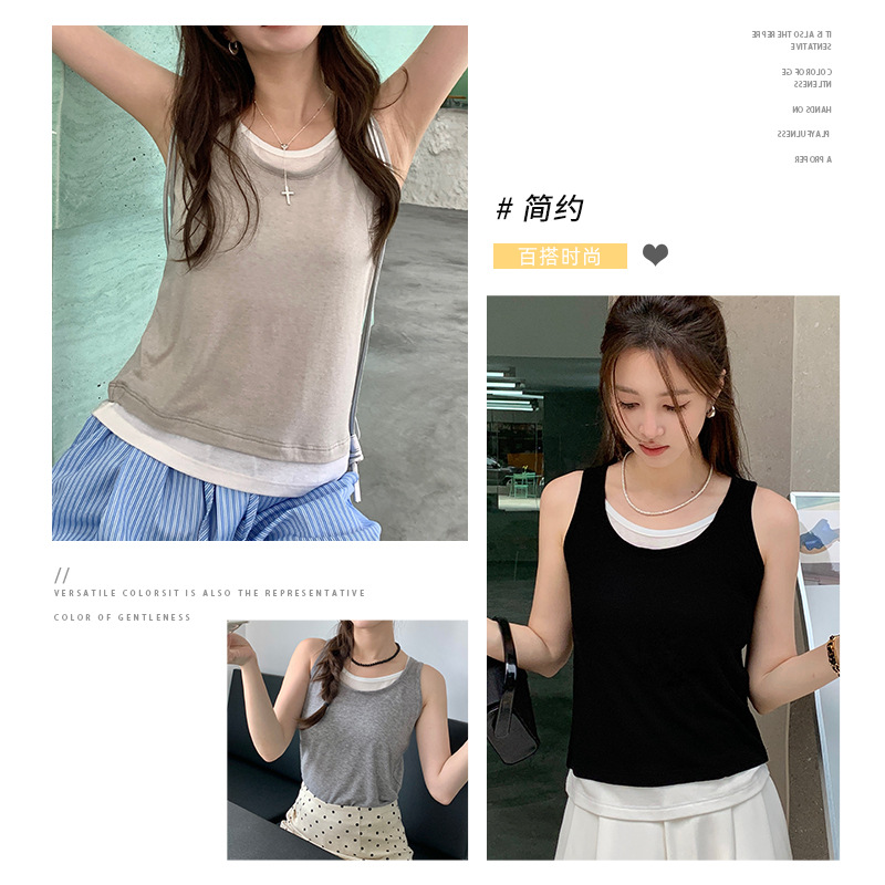 | nameOriginal | Summer Lanjing Tencel Vest Women's Bucket Design Sense Small Sling Outer Wear Fake Two-piece Inner Top Top Base Shirt |