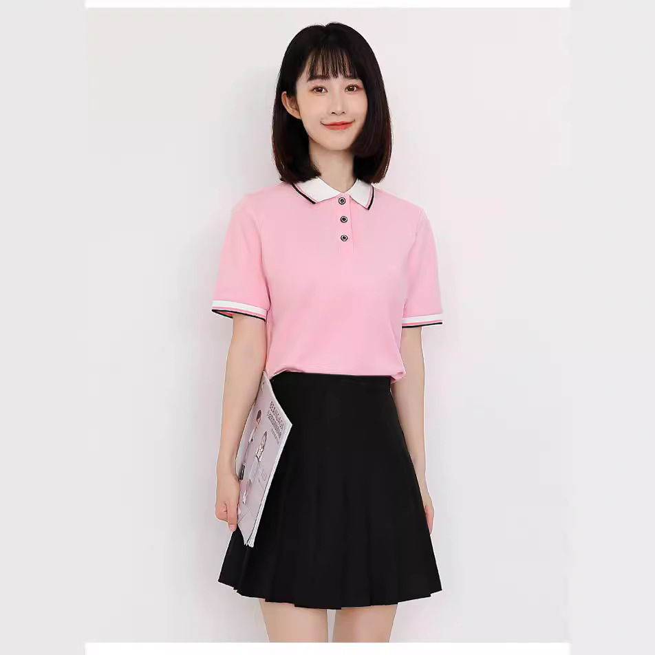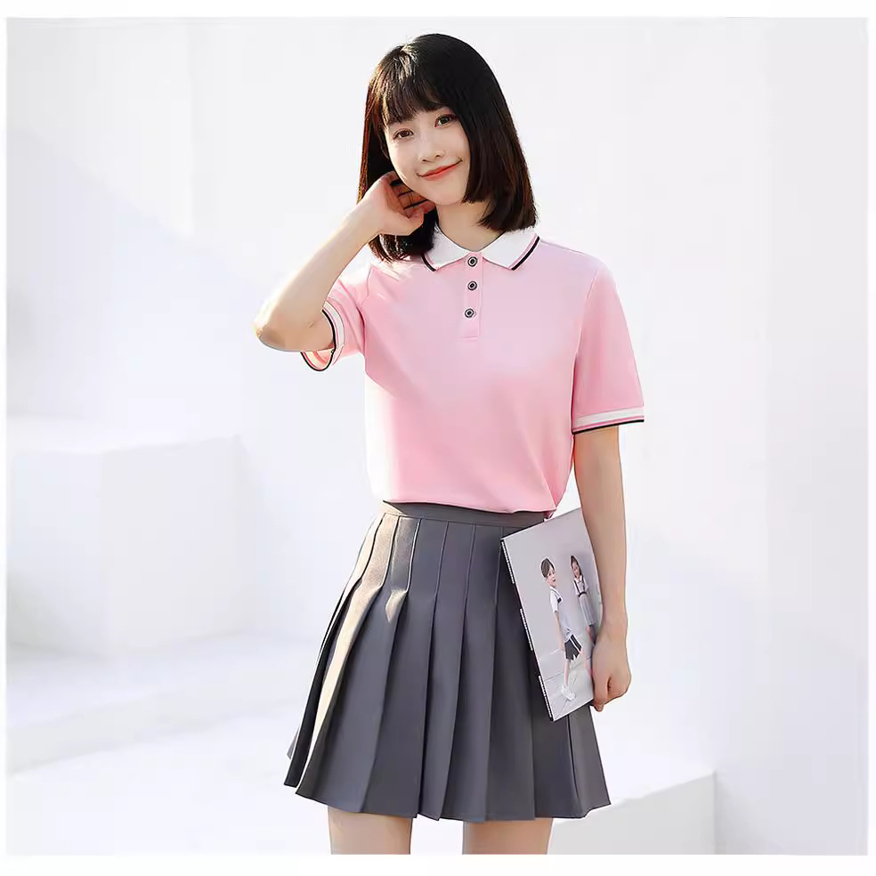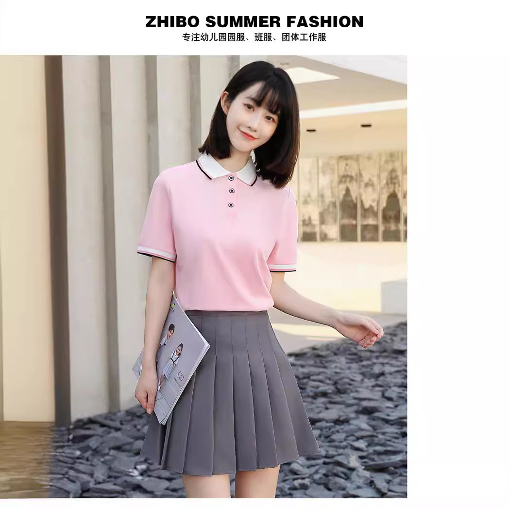 Summer Lapel Short-sleeved All-match College Style Polo Shirt Pleated Set Two-piece Short Skirt New T-shirt Professional Wear