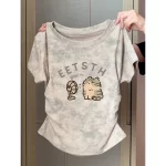 | nameOriginal | Summer large size right shoulder short-sleeved t-shirt for women 2024 new small slim fit tie-dye slightly fat slimming short top |