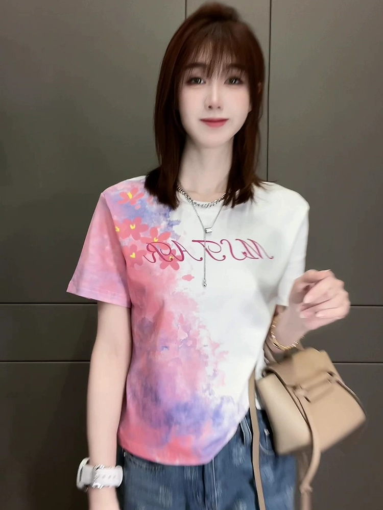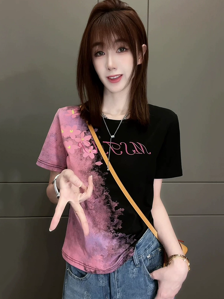 Summer letters ins slimming right shoulder printed short-sleeved T-shirt