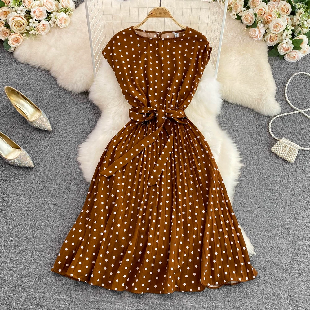| nameOriginal | Summer light and mature style pleated polka dot dress with bow tie |