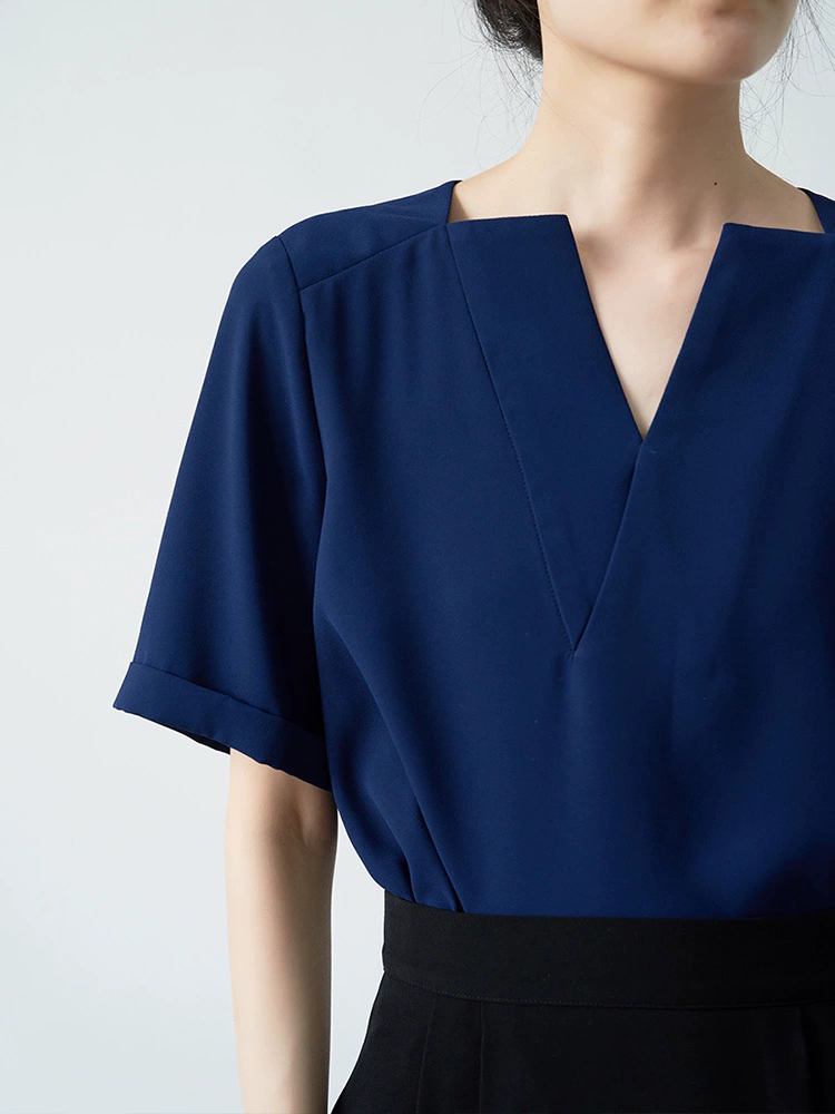 | nameOriginal | Summer light luxury v-neck temperament commuter short-sleeved shirt women's design niche professional style chic small shirt top |