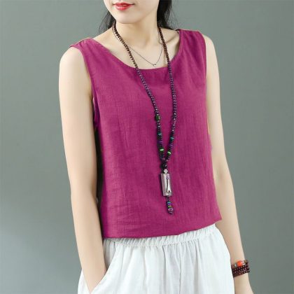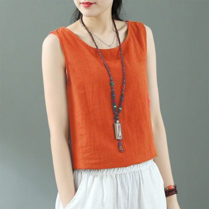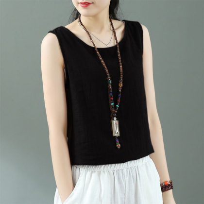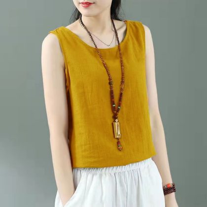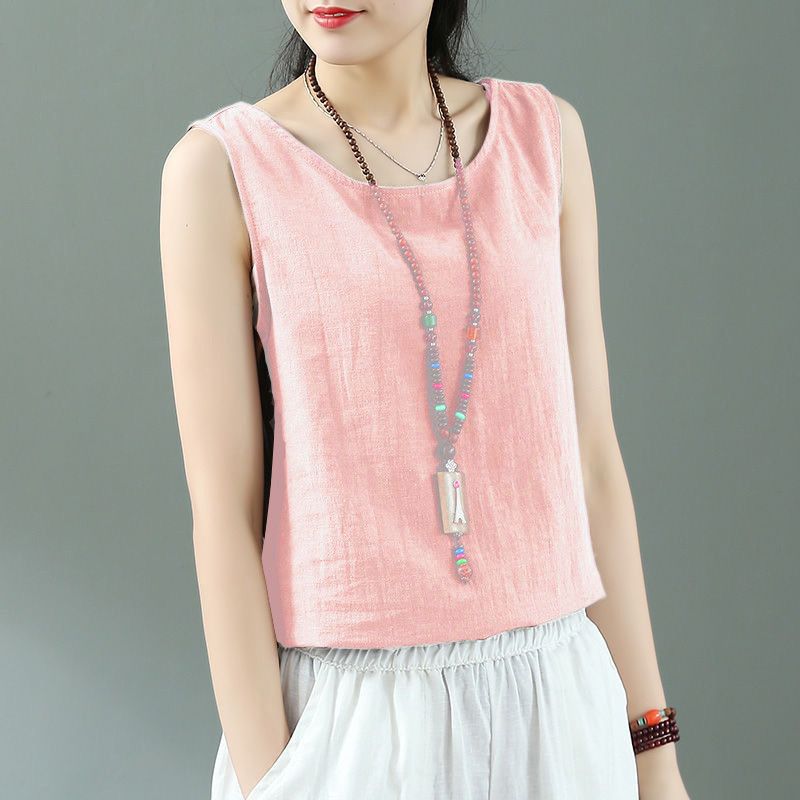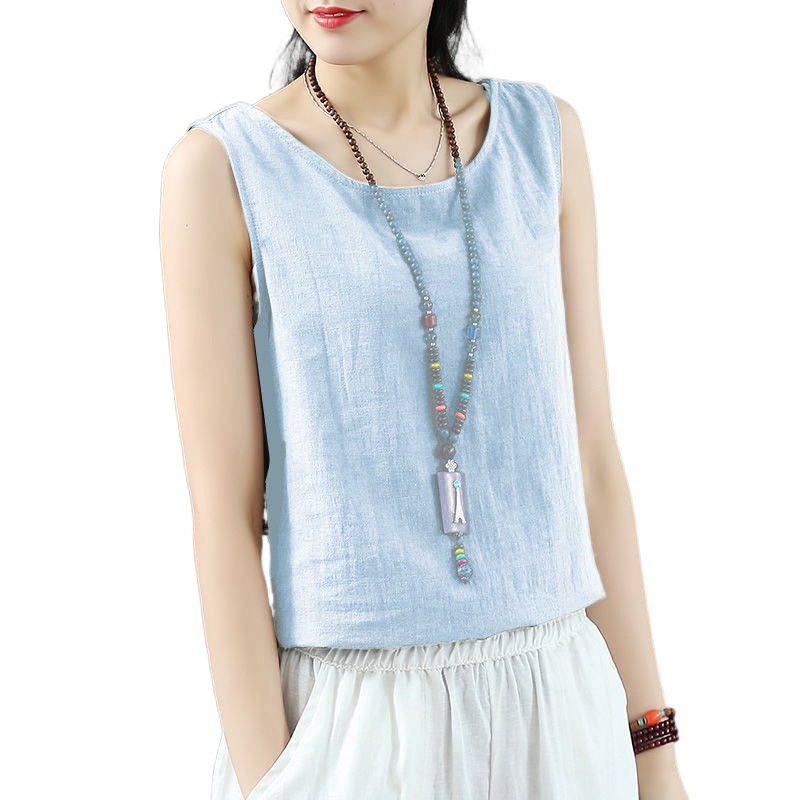 Summer Linen Sleeveless Sling Loose Top Vintage Cotton and Linen Base White Small Vest for Women