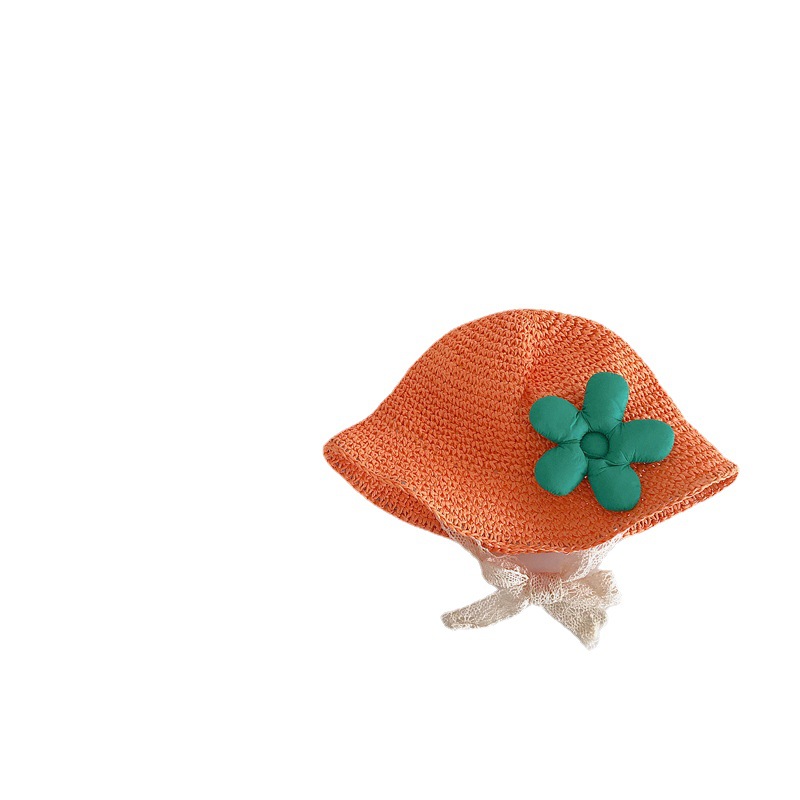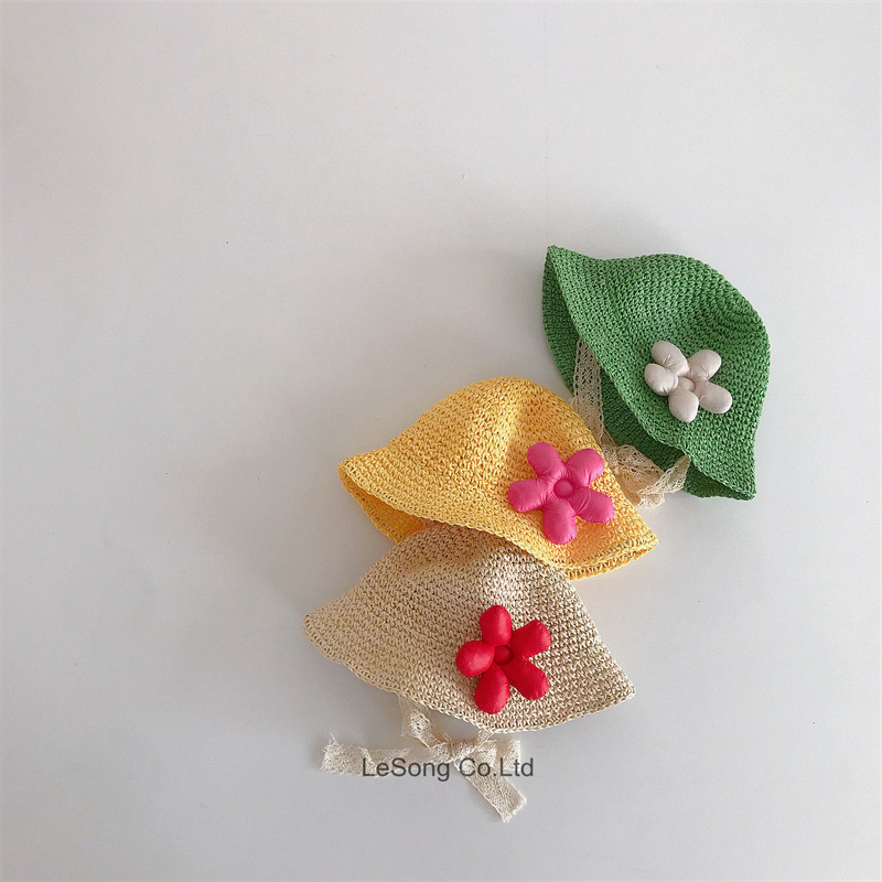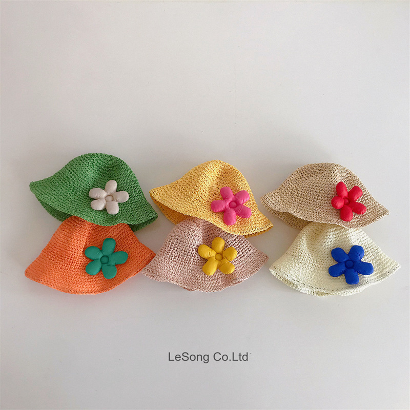 Summer Little Flower ~ ins Korean Children’s Small Straw Hat Girls Summer Sunshade Sunscreen Hat Baby’s Straw Beach Hat