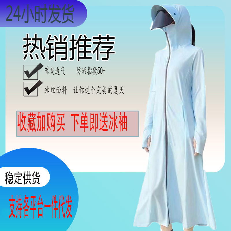 | nameOriginal | Summer Long Ice Silk Sunscreen Clothing Women's Anti-UV Outdoor Simple Casual Style Lengthen Original Yarn Breathable Sunscreen Clothing |