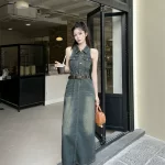 | nameOriginal | Summer long skirt for fat girls, retro distressed denim vest |