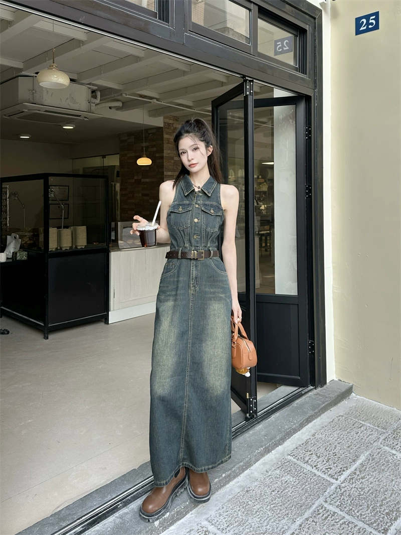 | nameOriginal | Summer long skirt for fat girls, retro distressed denim vest |