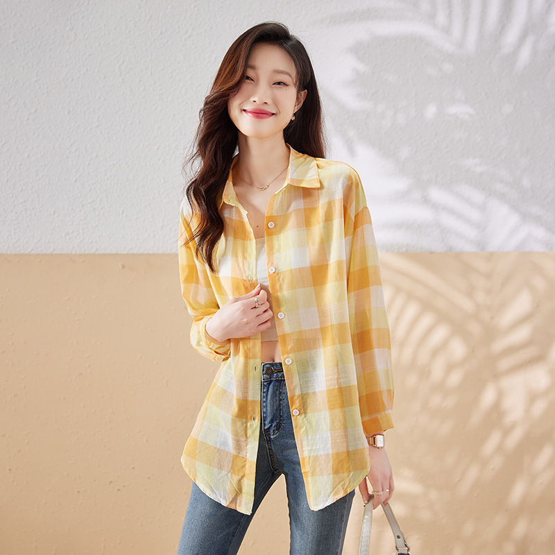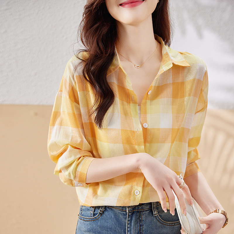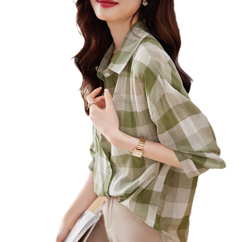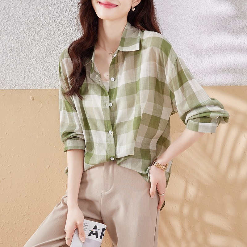 | nameOriginal | Summer Loose Elegant Casual Long-sleeved All-match Shirt Plaid Top Women's Sunscreen Thin Classic Plaid Cardigan |
