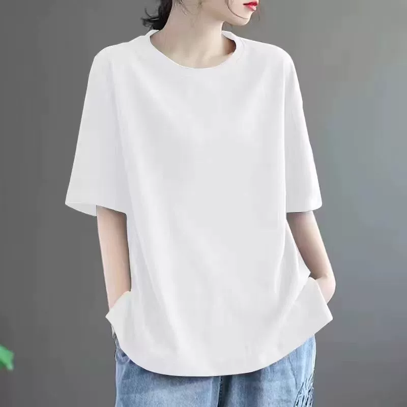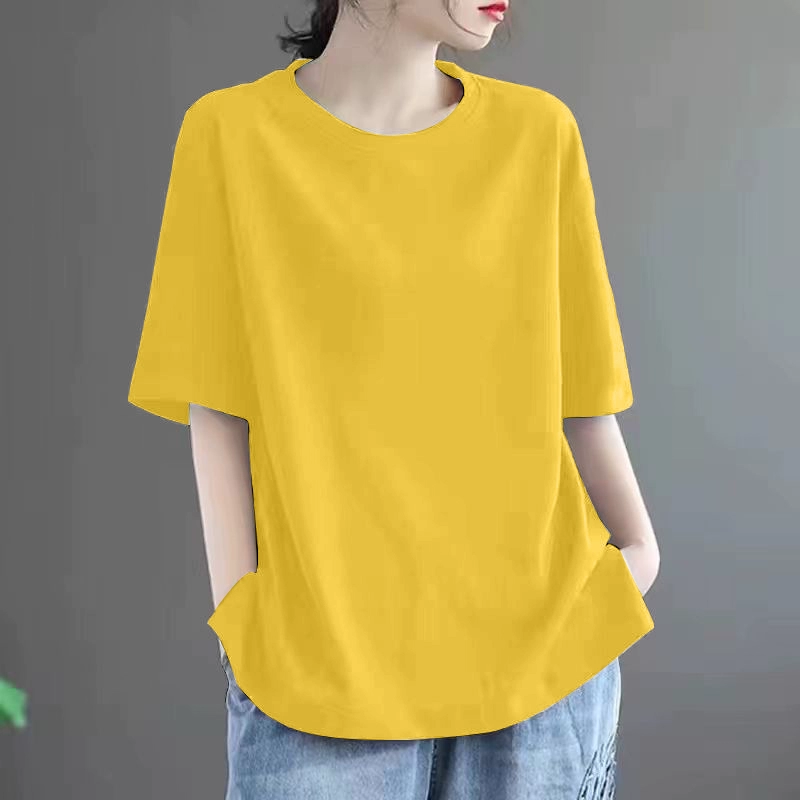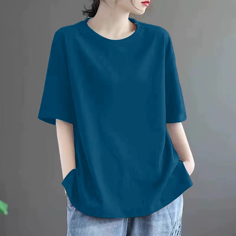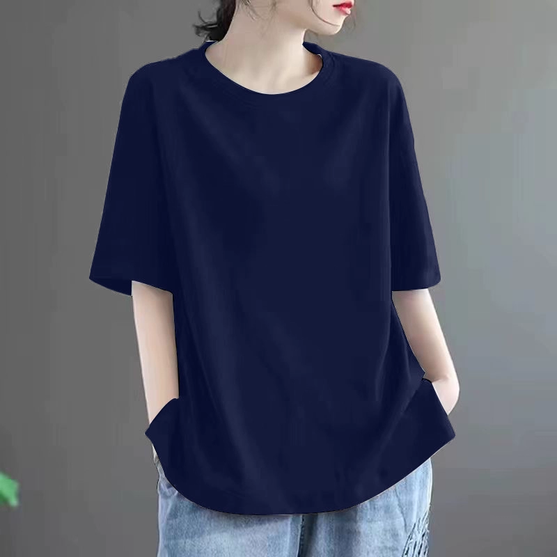 Summer loose-fitting belly-covering solid color short-sleeved T-shirt for fat mm