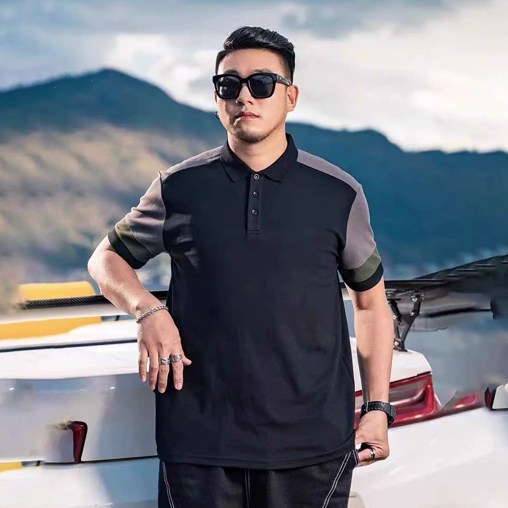 | nameOriginal | Summer loose large size spliced short-sleeved polo shirt for fat men plus fat plus size business casual solid color lapel T-shirt |