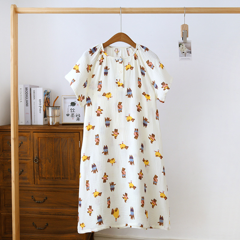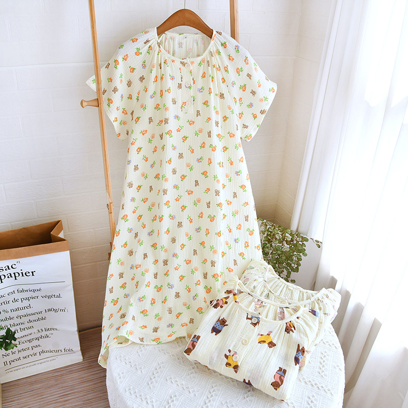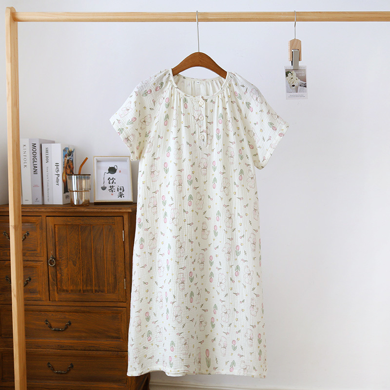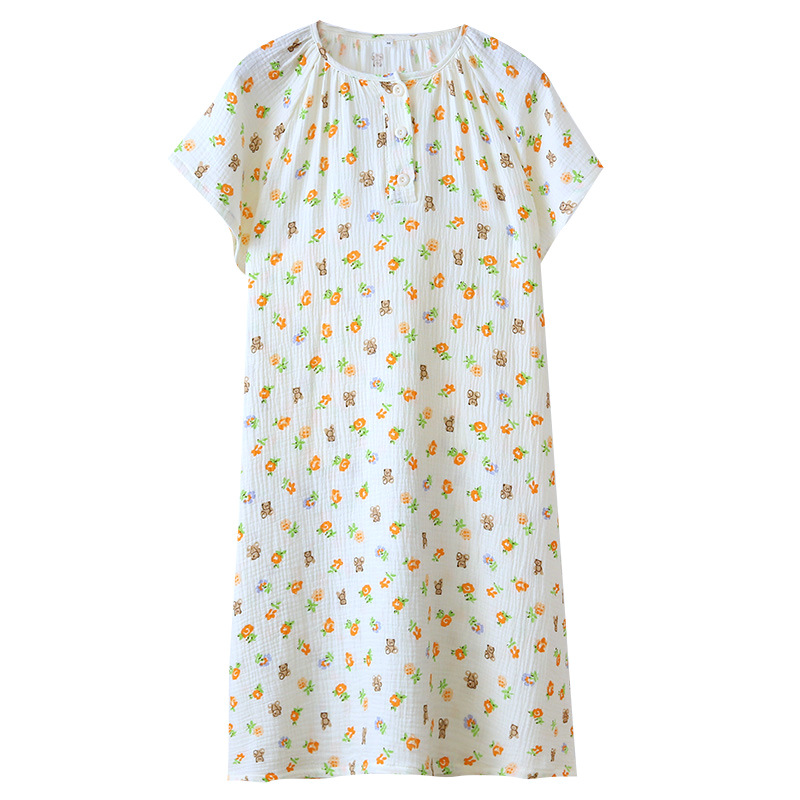 | nameOriginal | Summer loose nightgown wholesale new short sleeve nightgown crepe double layer yarn cotton loose large size home clothes |