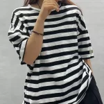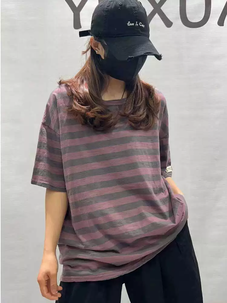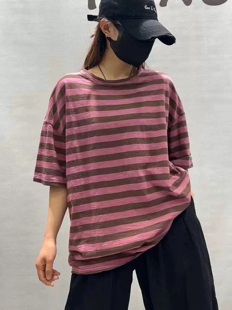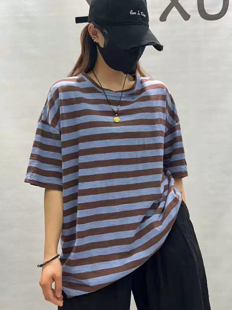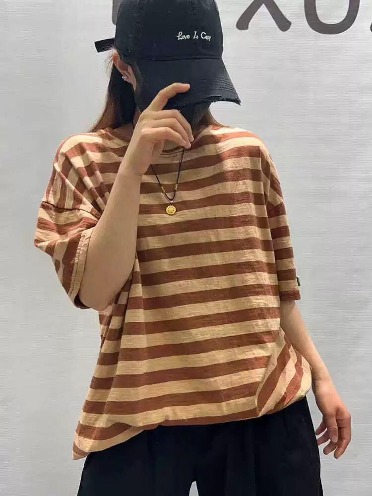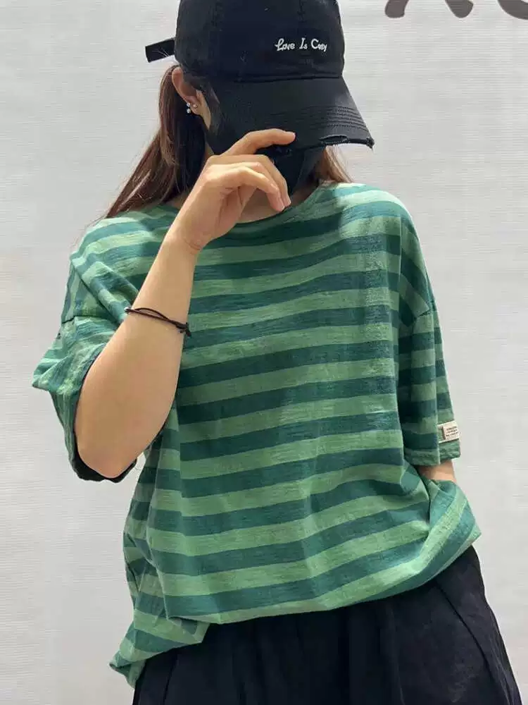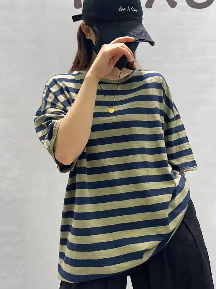 | nameOriginal | Summer loose round neck retro cotton striped short sleeves |