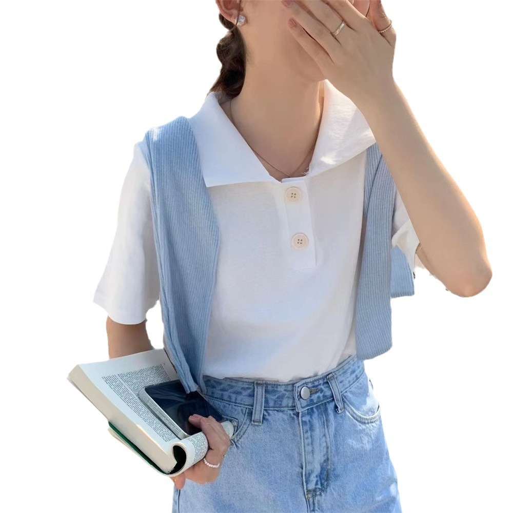 Summer loose top new short sleeve T-shirt women's solid color POLO collar Joker student girl top a generation of hair