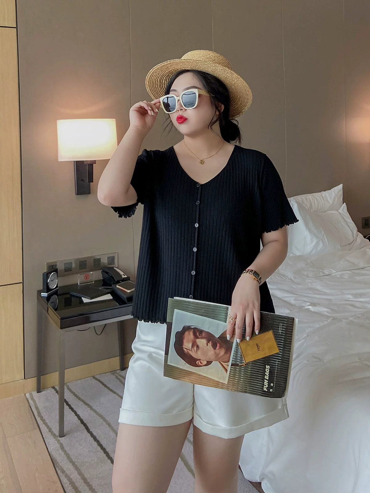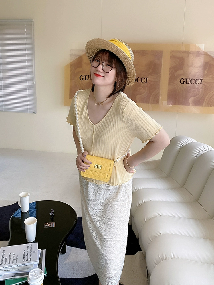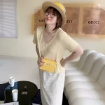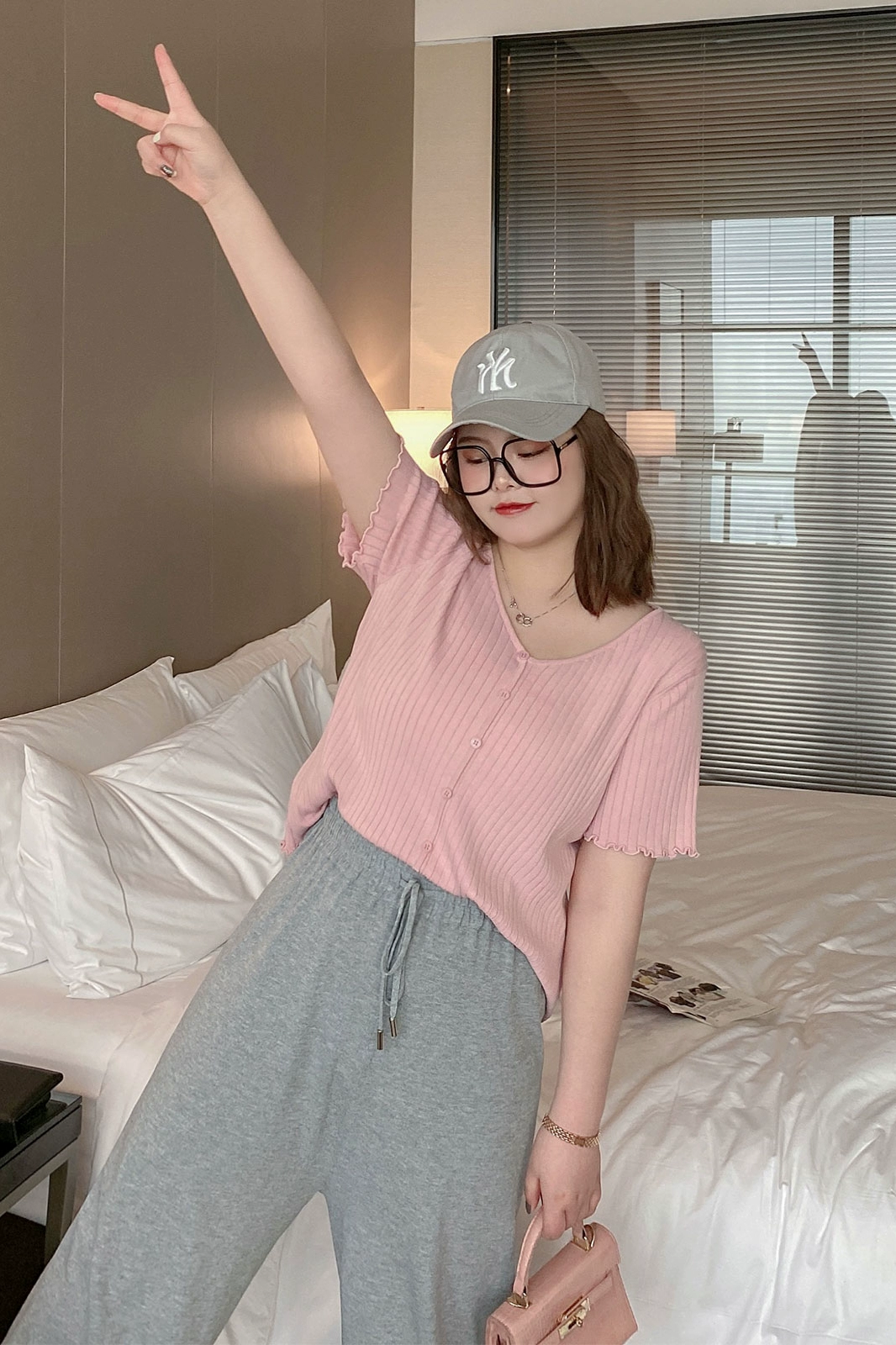 Summer loose v-neck short-sleeved thin top ice silk t-shirt
