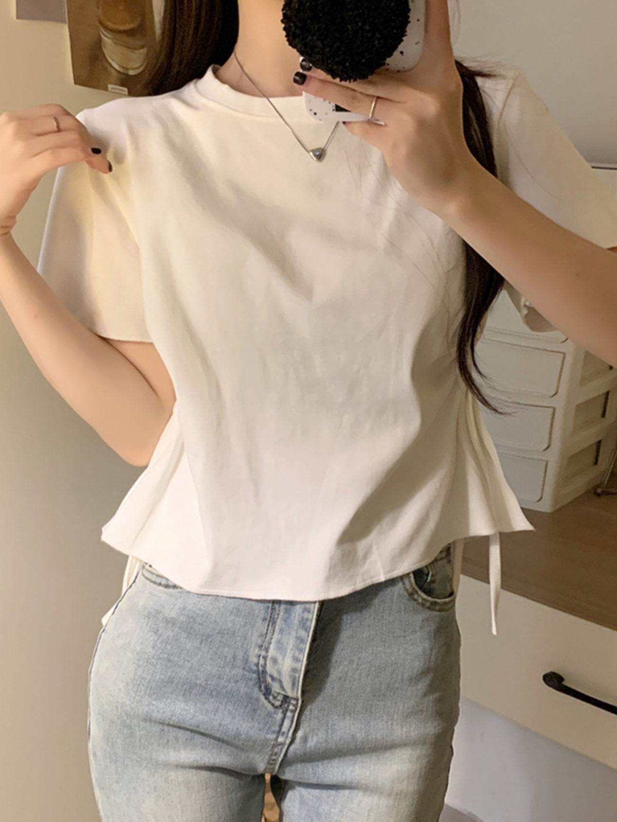 Summer loose white niche design short-sleeved T-shirt