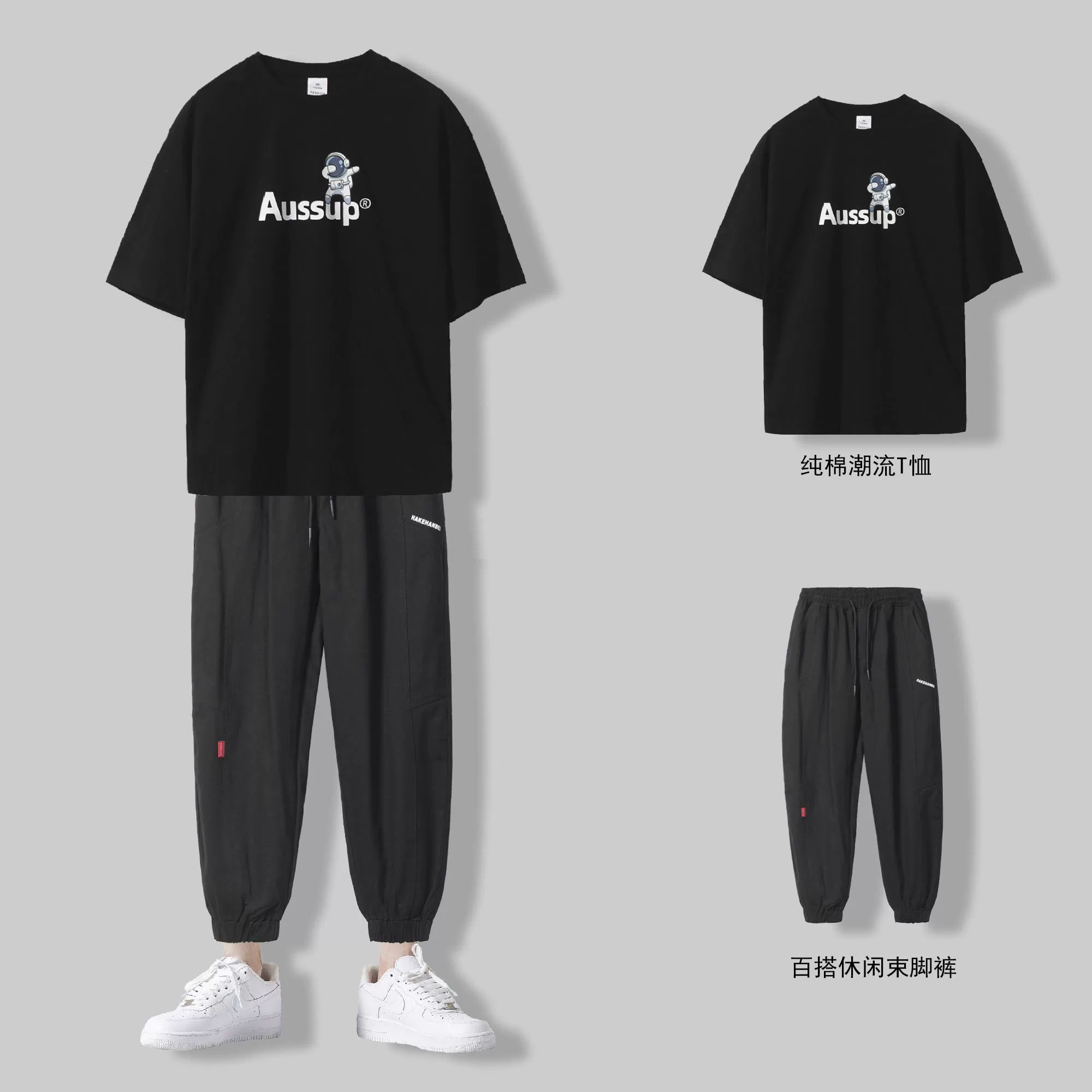 | nameOriginal | Summer men's casual sports suit, trendy thin pure cotton short-sleeved T-shirt, loose clothes, handsome set |
