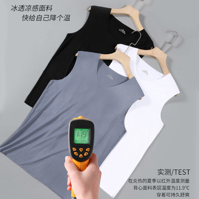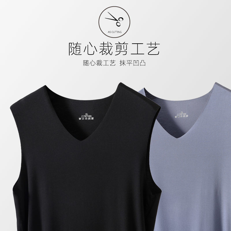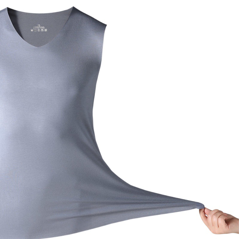 | nameOriginal | Summer men's seamless ice silk vest chicken heart collar breathable sweat-absorbent stretch slim sleeveless bottoming shirt factory outlet |