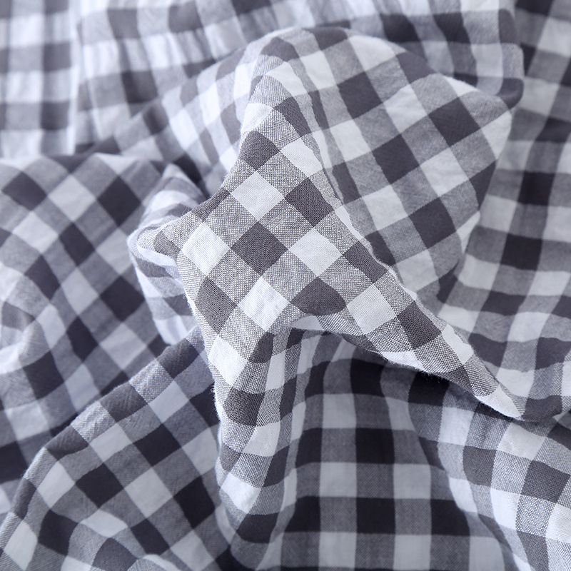 Summer Men’s Seersucker Japanese Style Simple Plaid Short Sleeve Pajamas Set Spring and Autumn Thin Trousers Loose Home Clothes