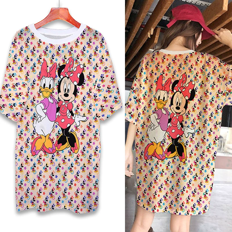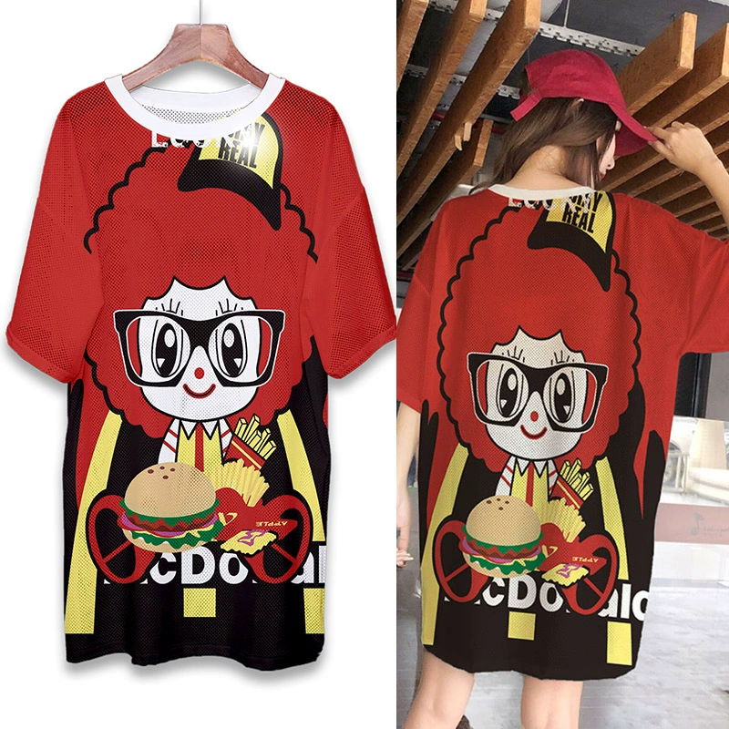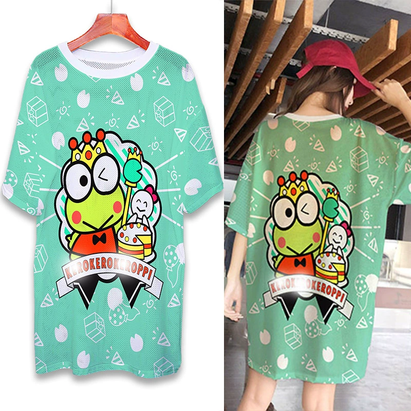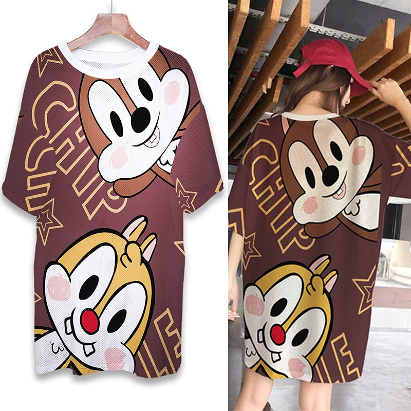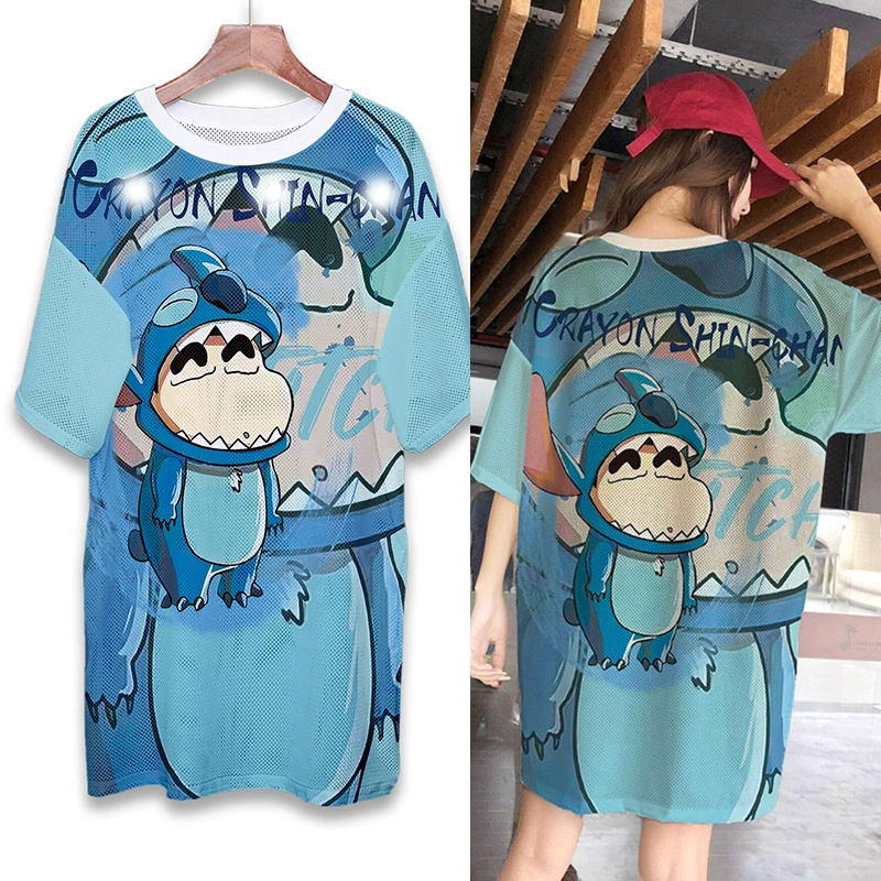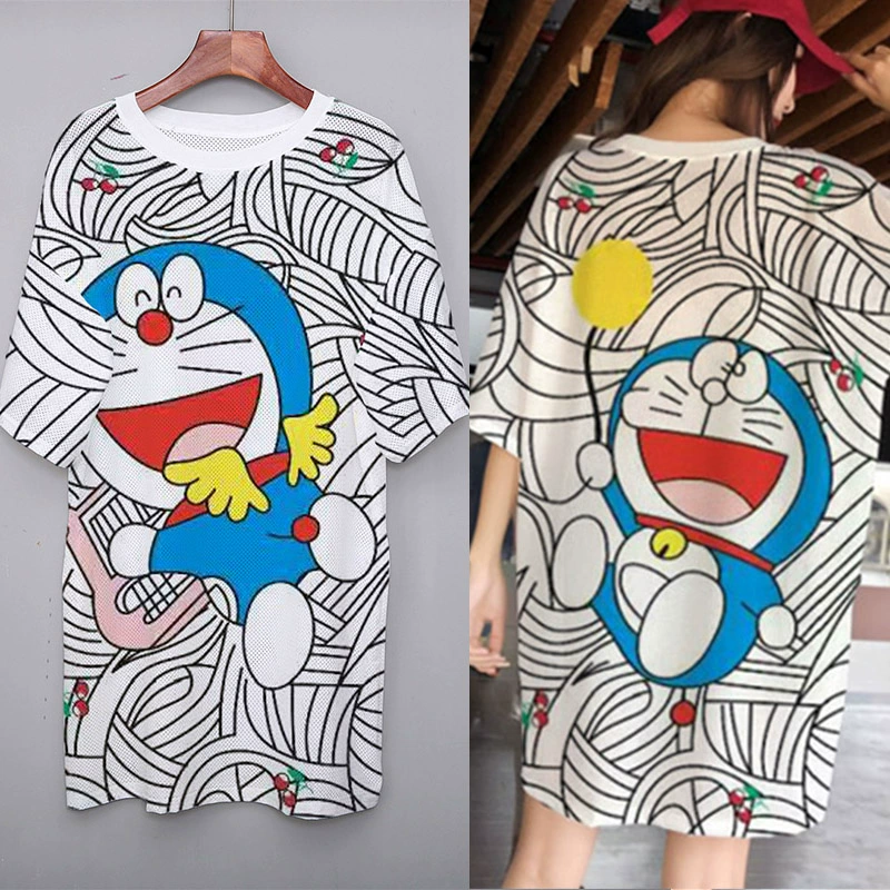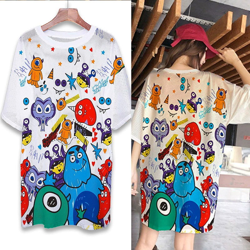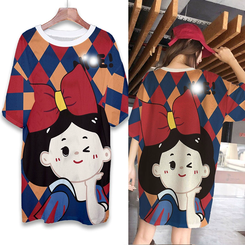 | nameOriginal | Summer mesh ice silk quick-drying T-shirt dress cartoon print internet celebrity round neck pullover ins super hot fat MM mid-length top |