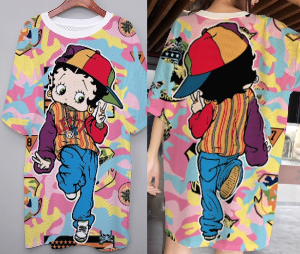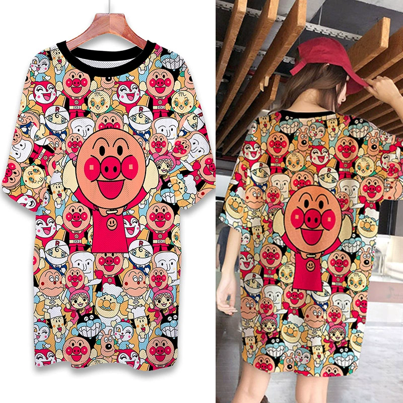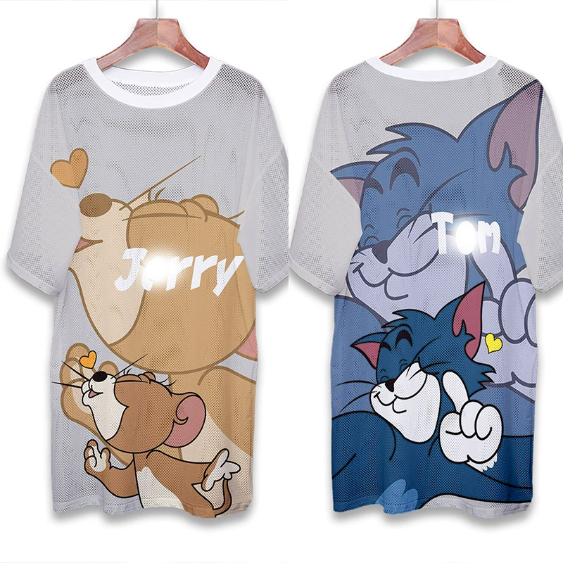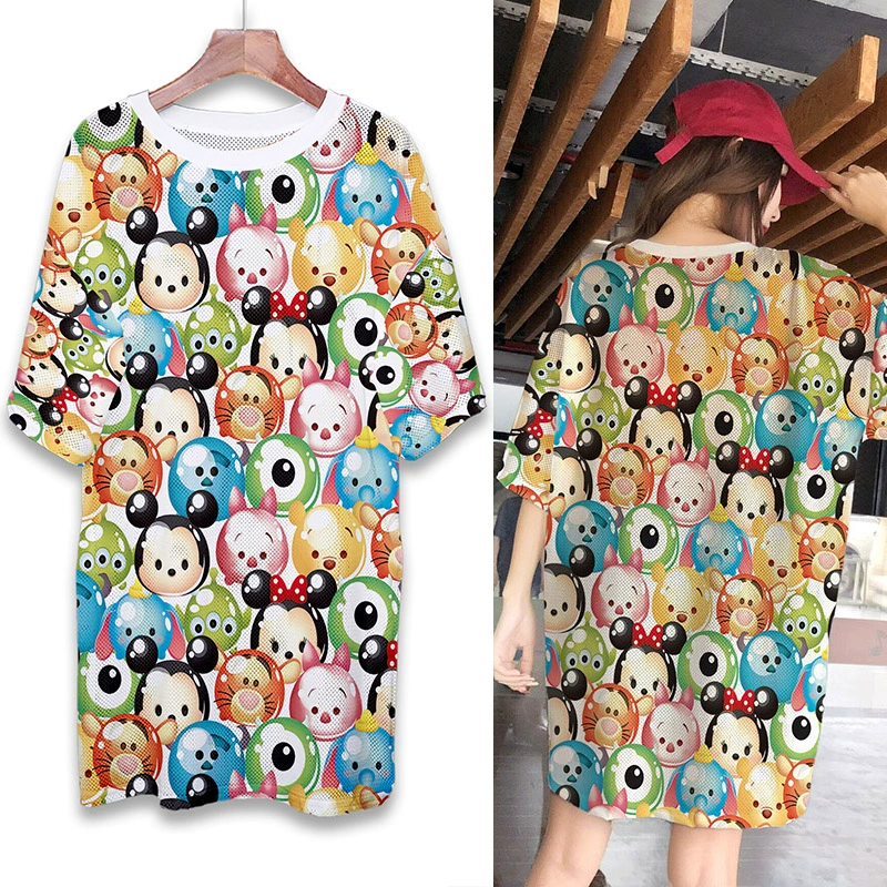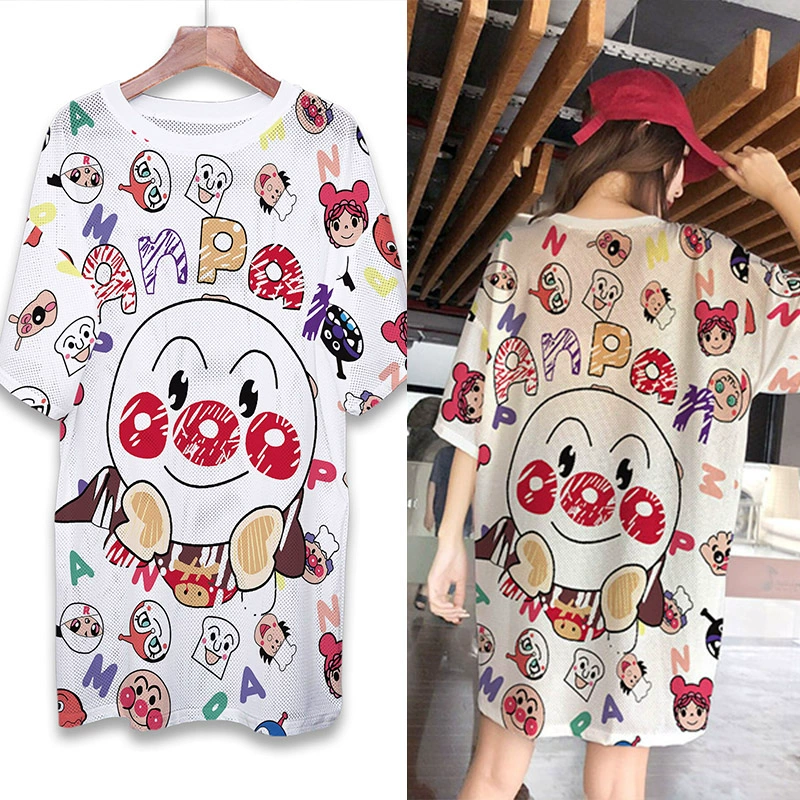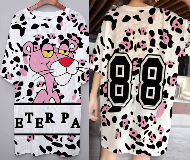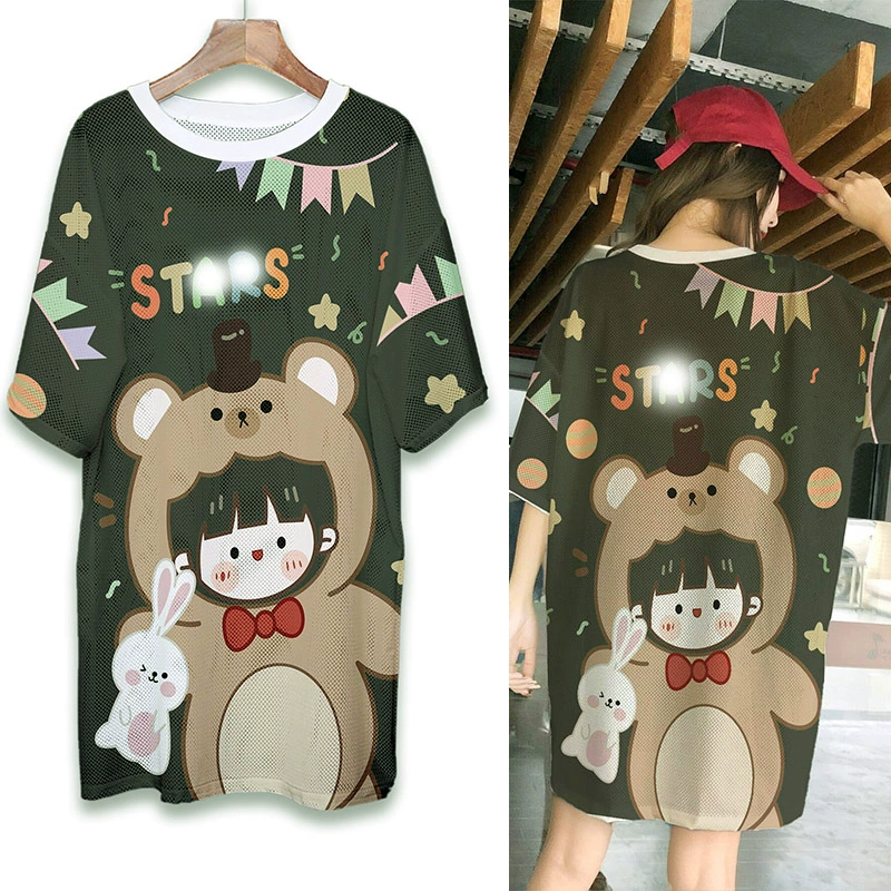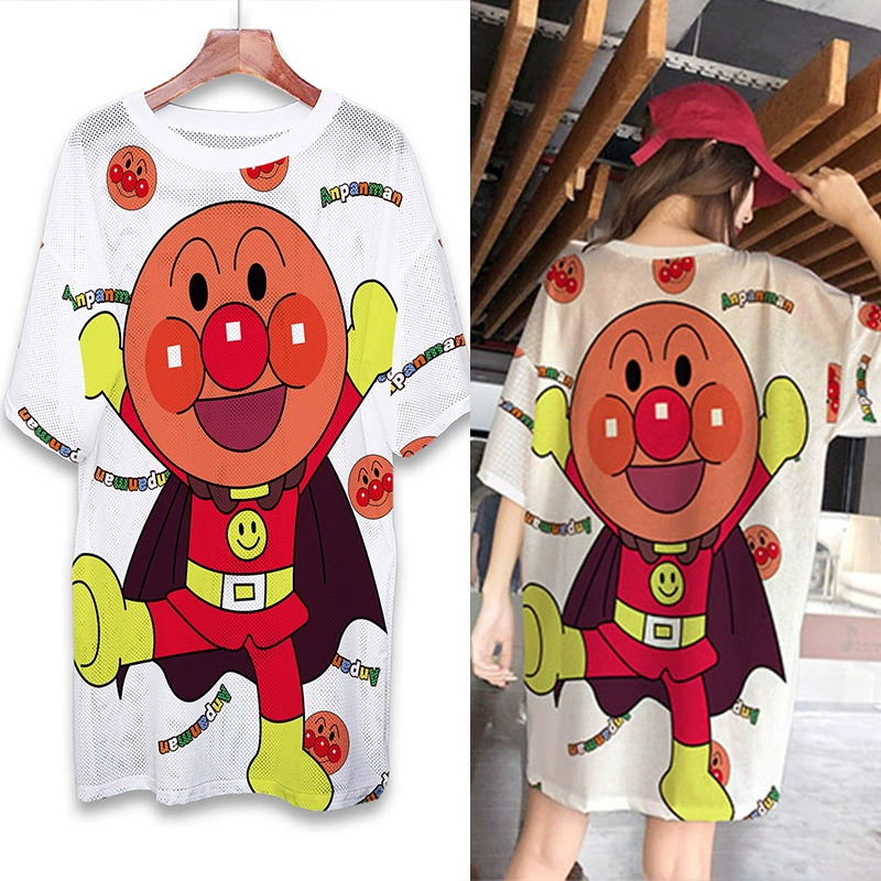 | nameOriginal | Summer mesh ice silk quick-drying T-shirt dress cartoon print internet celebrity round neck pullover ins super hot fat MM mid-length top |
