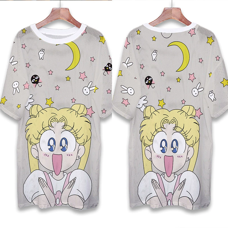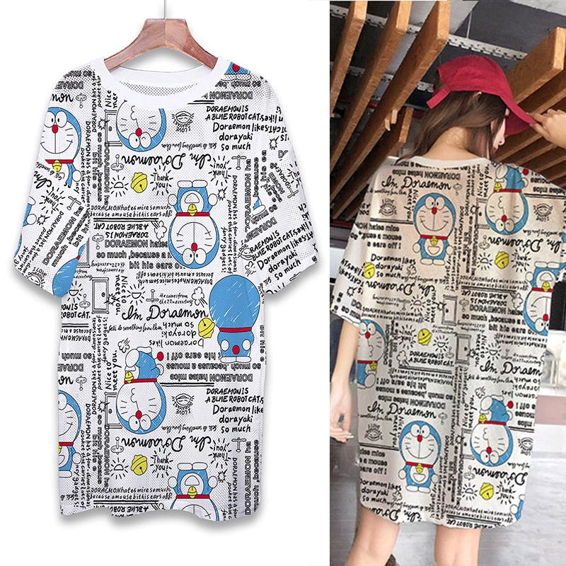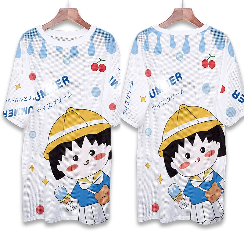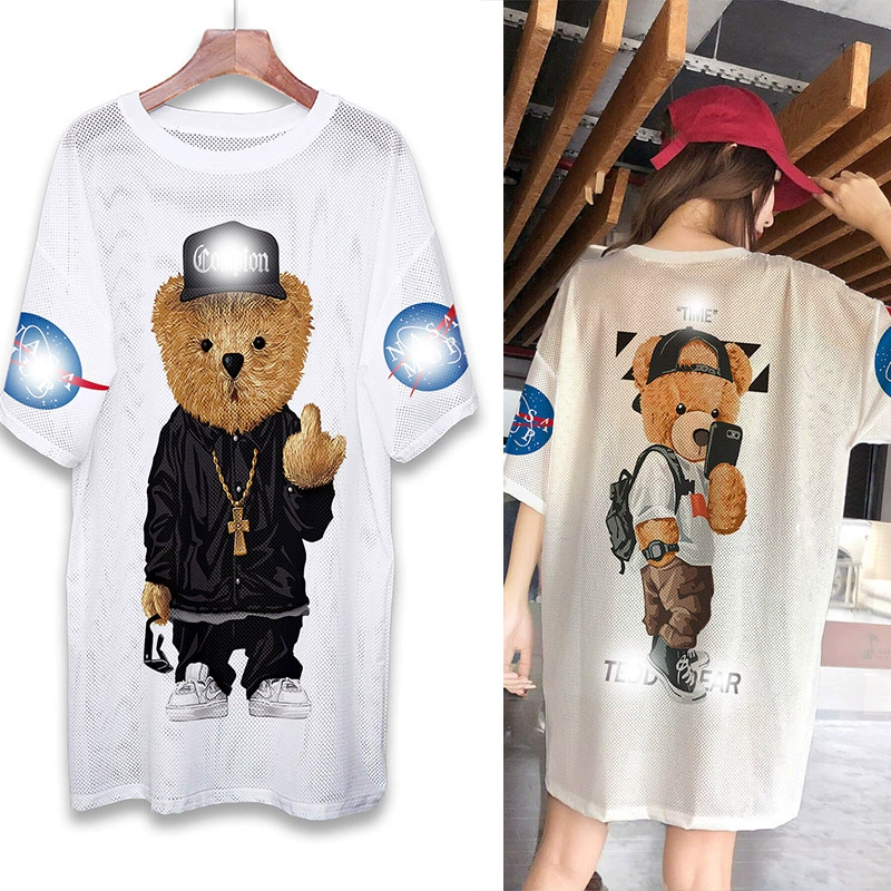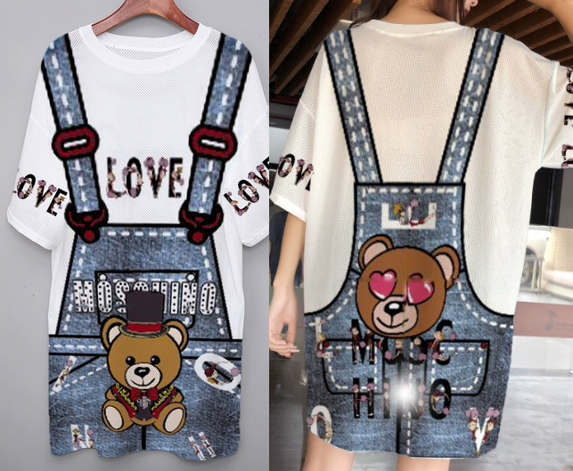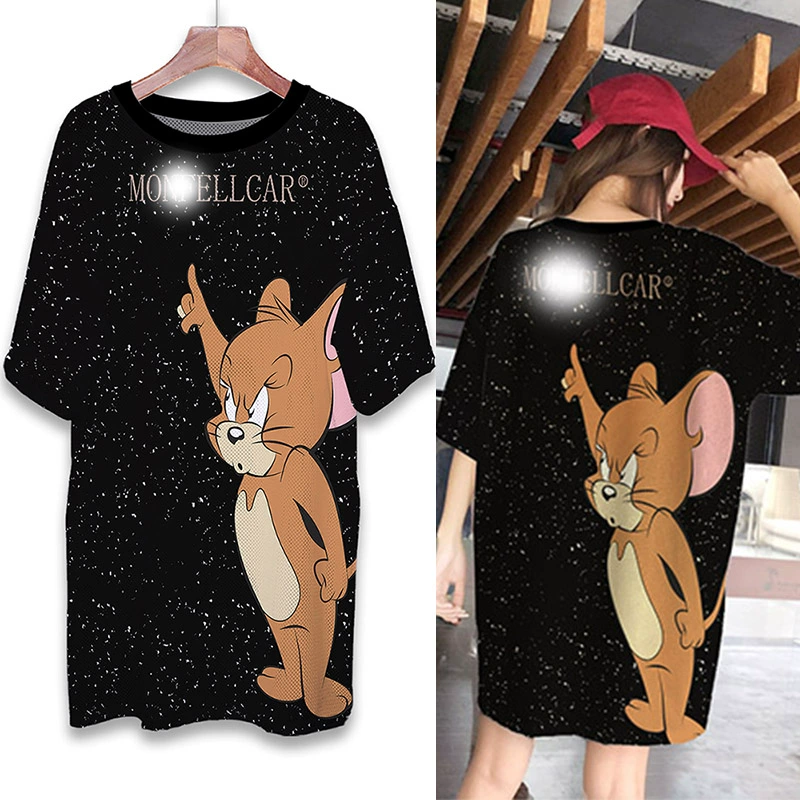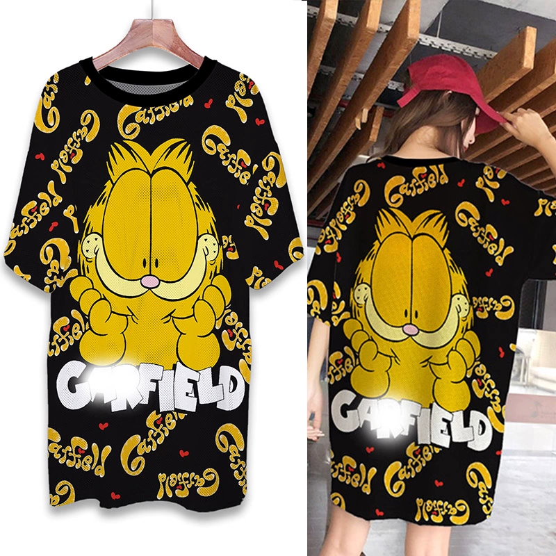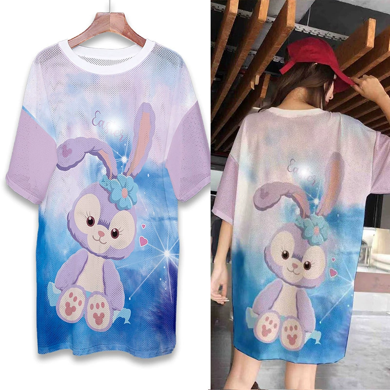 | nameOriginal | Summer mesh ice silk quick-drying T-shirt dress cartoon print internet celebrity round neck pullover ins super hot fat MM mid-length top |