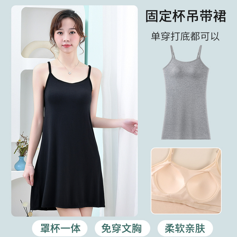 | nameOriginal | Summer modal bottoming suspender skirt women's inner fixed Cup with chest pad mid-length slim-fit solid color all-match suspender |