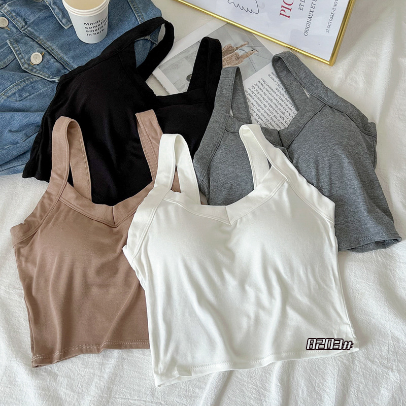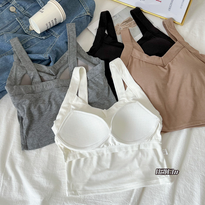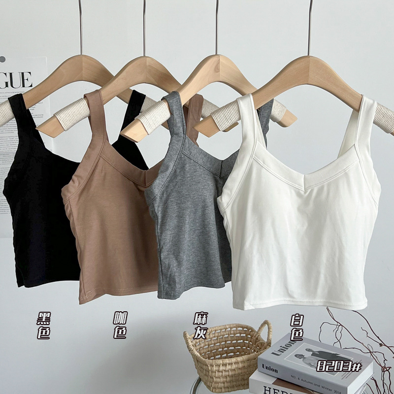 Summer Modal Inner Wear Thin Women’s One-piece Short Navel-exposed Slim-fit Sling Beautiful Back Vest with Chest Pad