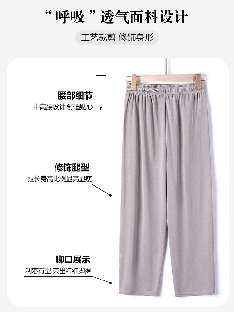 | nameOriginal | Summer Mom's Ice Silk Casual Pants Grandma's Capri Pants Summer plus size Women's Pants Middle-aged and Elderly Women's High Waist Straight Pants |