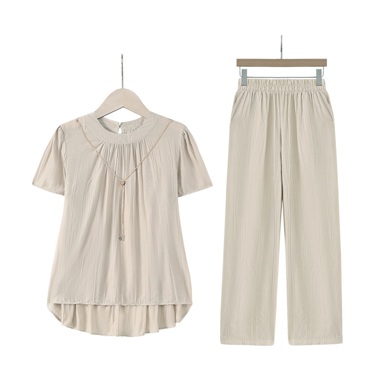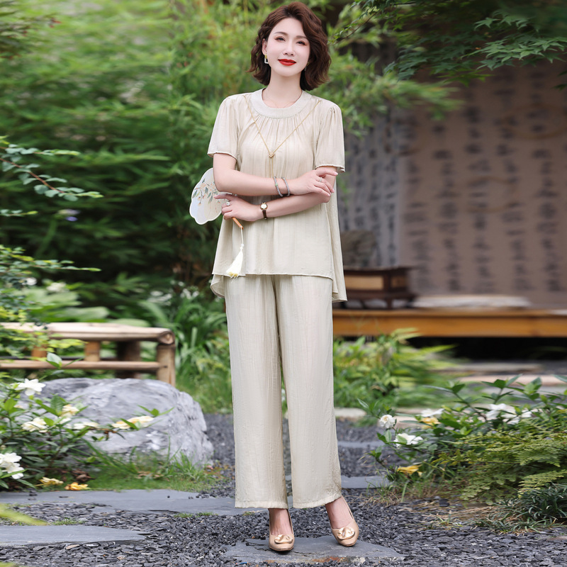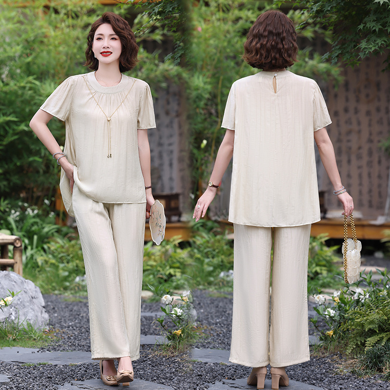 | nameOriginal | Summer Mother's Clothes Solid Color Loose Lazy Short-sleeved Top Pants Two-piece Short-sleeved Shirt Women's Clothing for Middle-aged and Elderly |