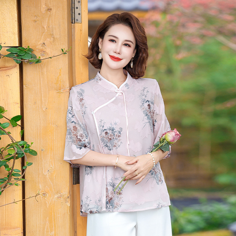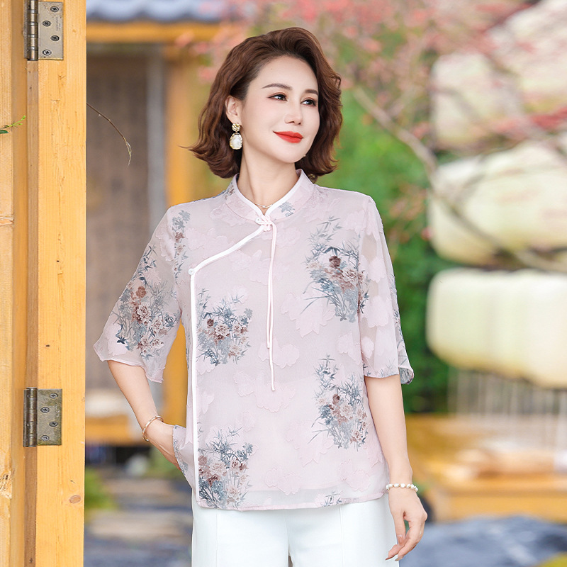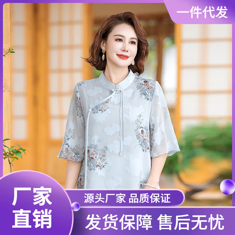 | nameOriginal | Summer Mother's New Chinese Chiffon Short-sleeved Shirt Middle-aged and Elderly Women's 2024 Summer National Style T-shirt Top |