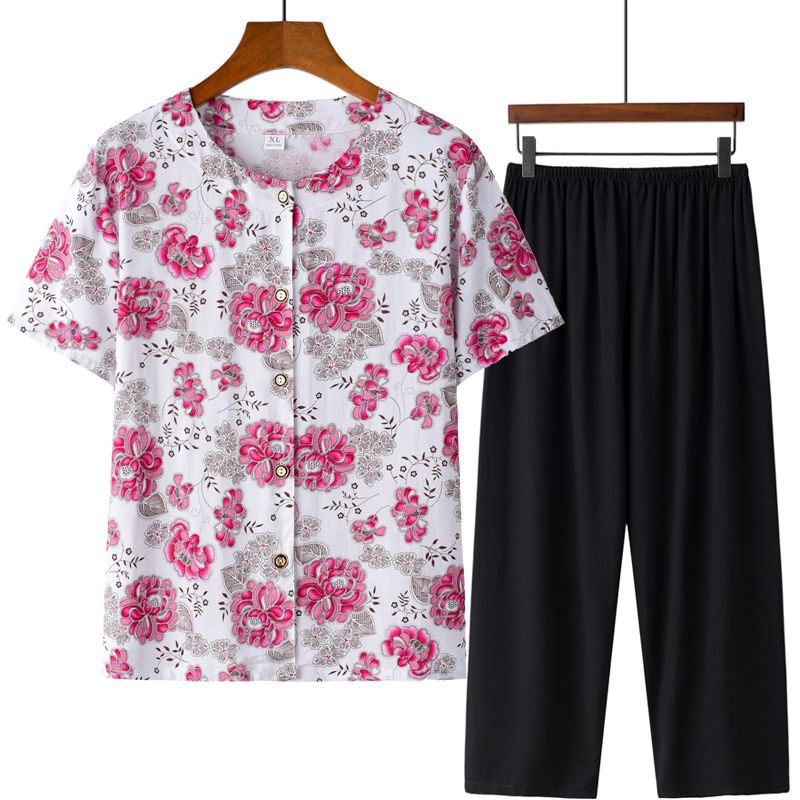 | nameOriginal | Summer Mother's Short-sleeved Shirt Middle-aged and Elderly Women's Cotton Silk Shirt Old Lady's Grandma's Two-piece Suit |