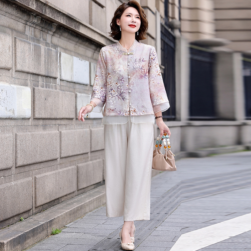 | nameOriginal | Summer Mother's suit New National Style Top Pants Two-piece Western Style Middle-aged and Elderly Women's Loose Shirt |