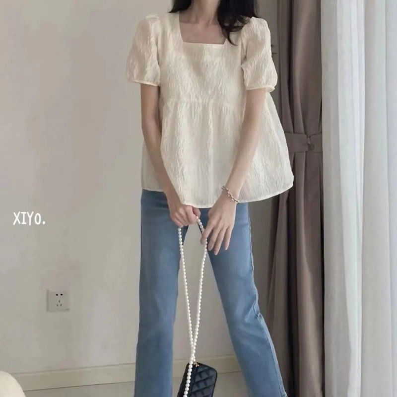 | nameOriginal | Summer New 23 Square Collar Puff Sleeve Shirt Women's Summer Loose Short Sleeve Top French Texture Doll Shirt |
