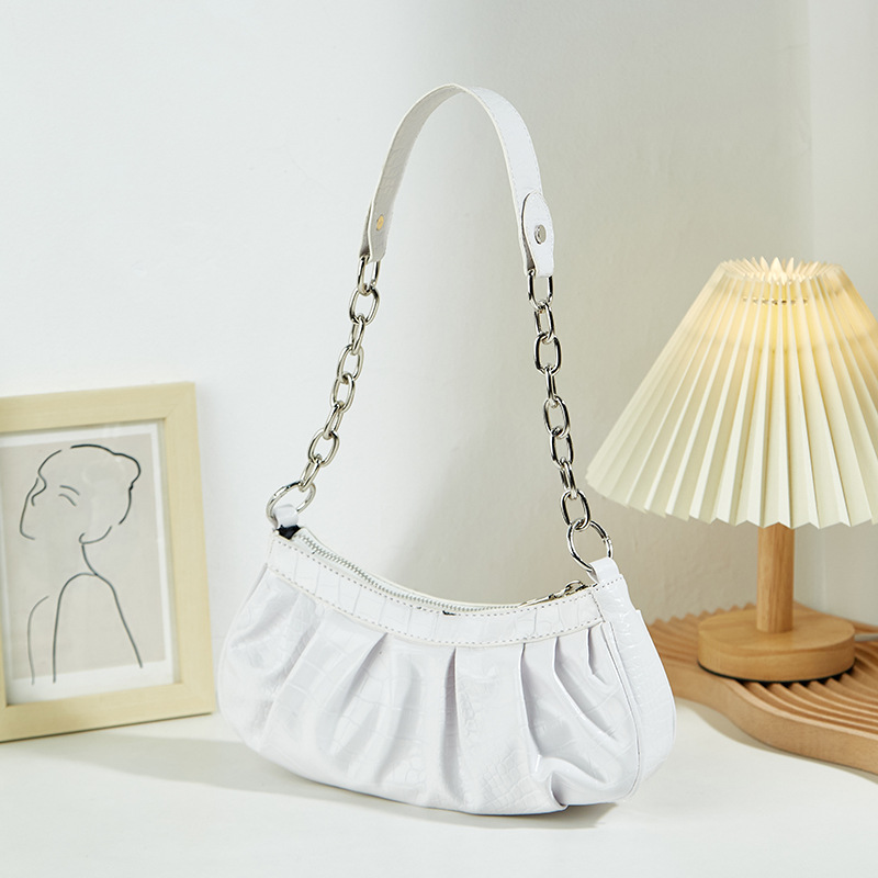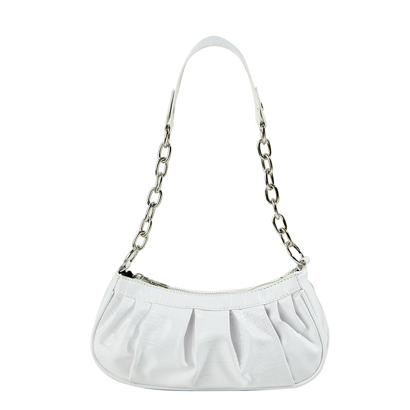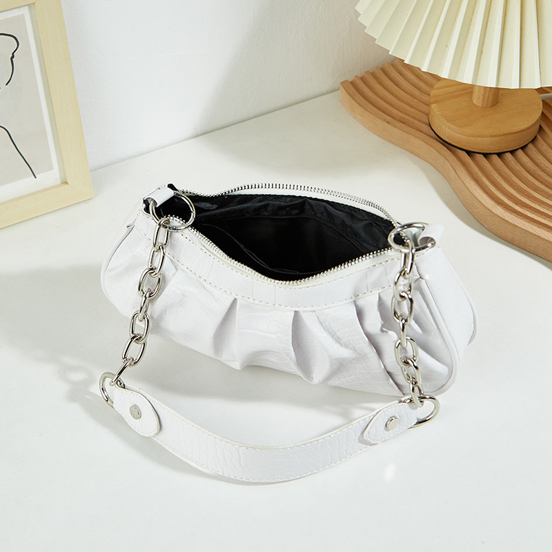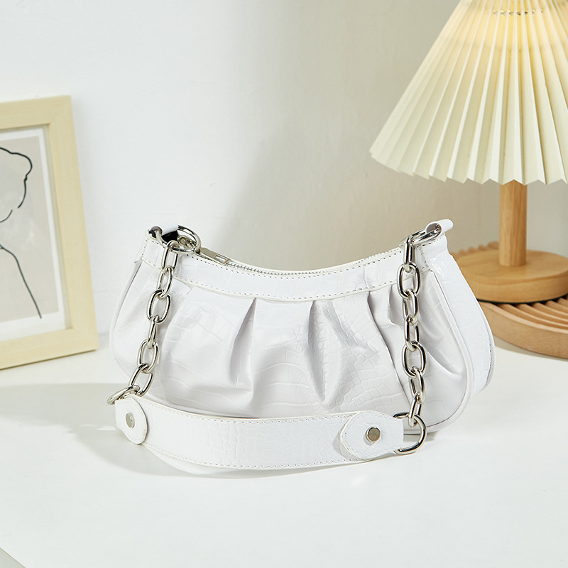 Summer New All-match Simple Women's Bag Chain Pleated Crocodile Shoulder Bag Solid Color Fresh Sweet Handbag